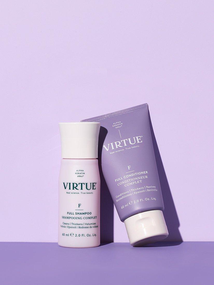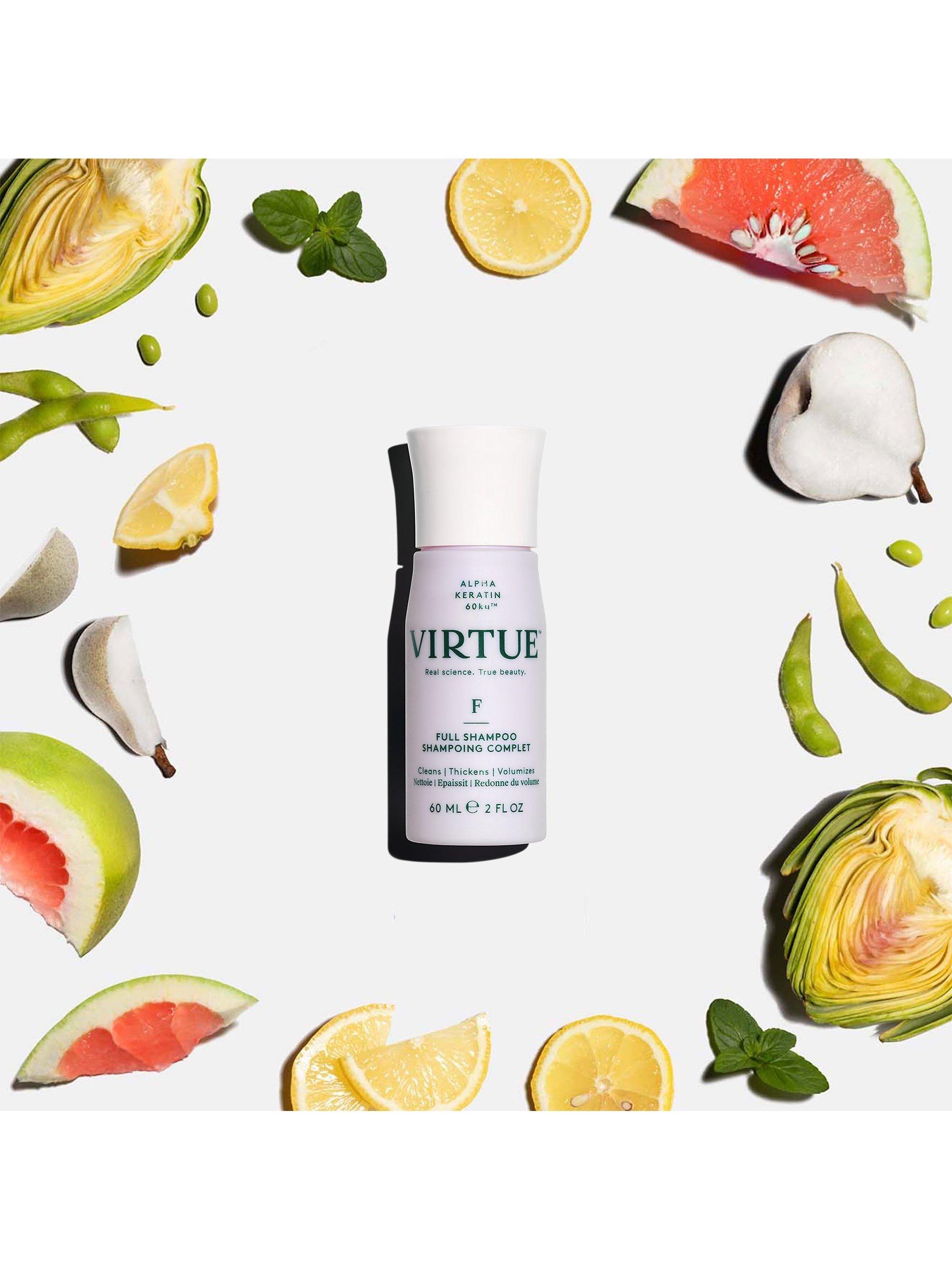 Virtue® Full Shampoo works to add volume while it cleanses. It dissolves excess oil, lifts the roots, and plumps each strand for weightless, long-lasting body.