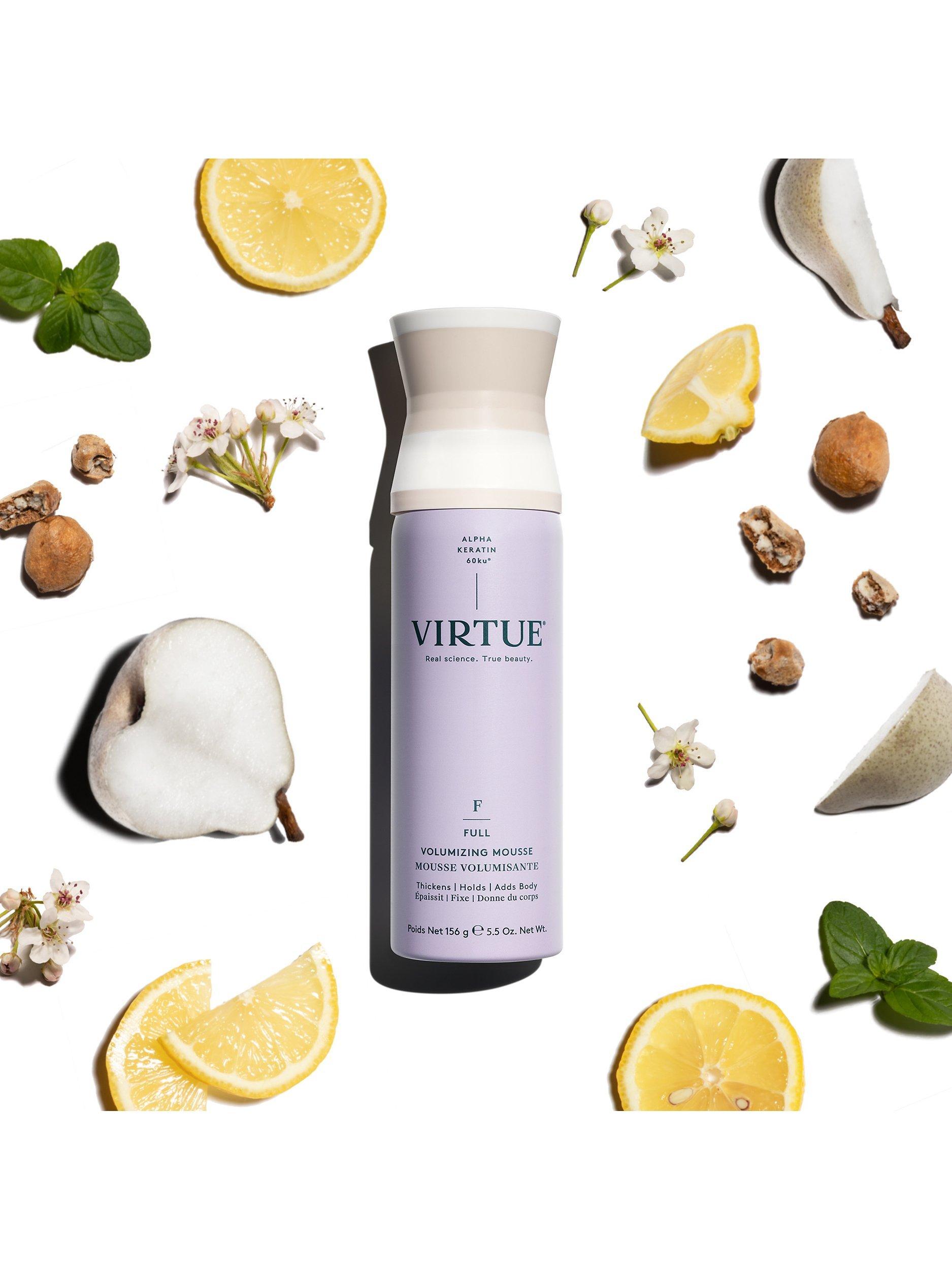 Virtue® Volumizing Mousse instantly thickens hair, adds body, bounce, and flexible hold for a long-lasting style.