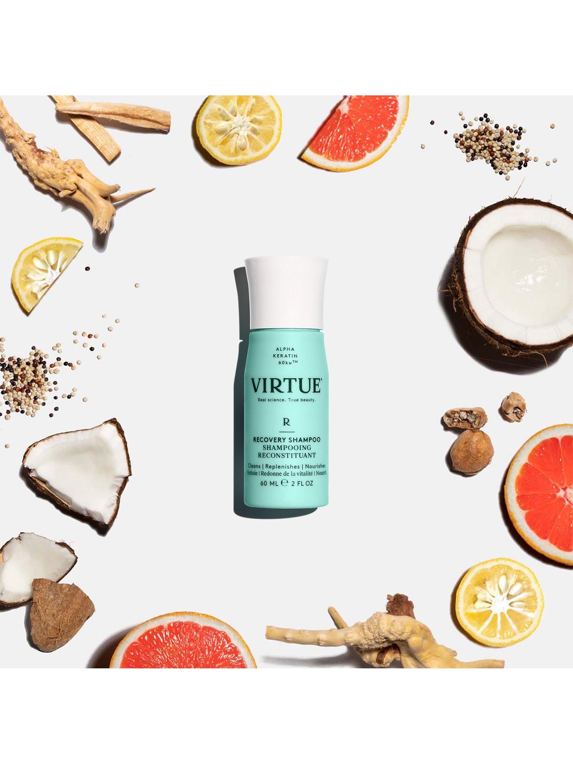 Virtue® Recovery Shampoo works to rebuild damaged hair with each use. It gently dissolves daily build-up while filling in cracks of damage to leave hair healthy, soft, and supple.