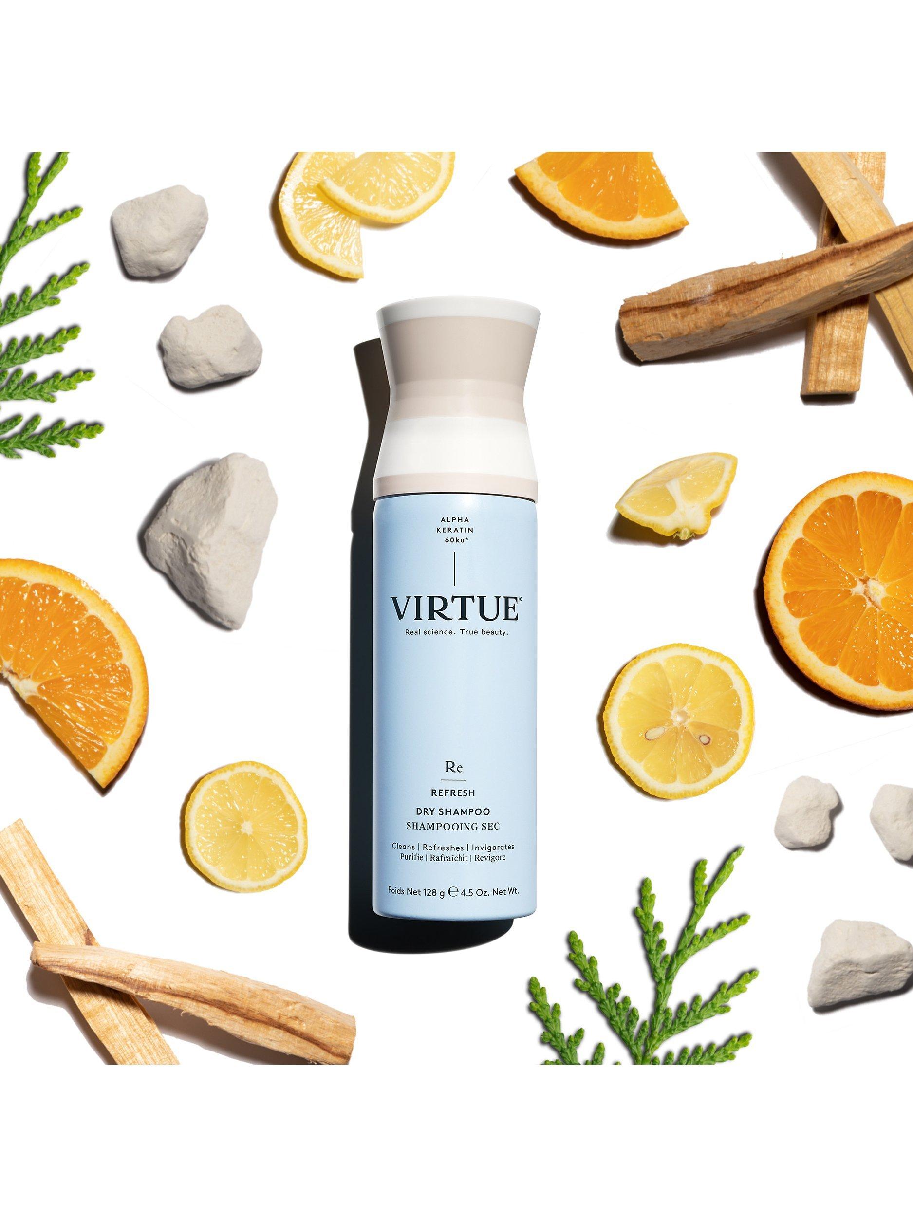 Virtue® Dry Shampoo is a weightless spray that absorbs build-up and revives style with each use. This invisible, clean aerosol spray dispenses as a dry mist that works to soak up excess oils while adding health-boosting Alpha Keratin 60ku®, leaving hair and scalp refreshed and clean to the touch.