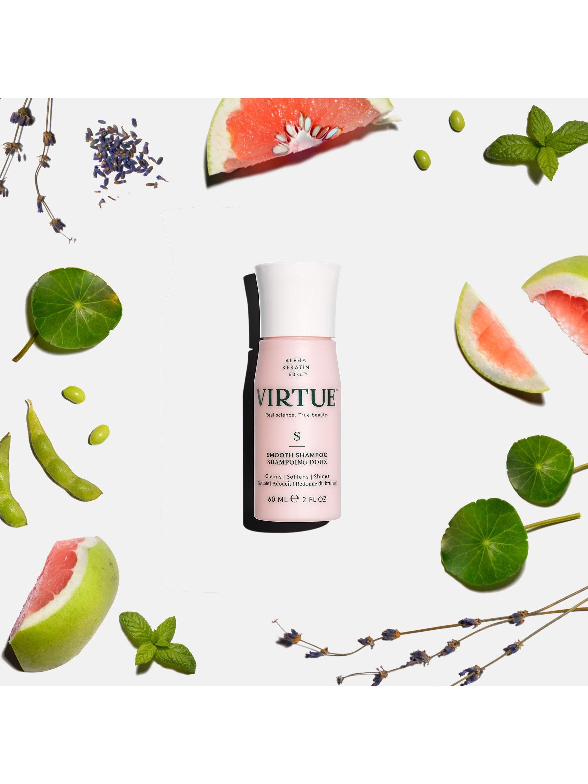 Virtue® Smooth Shampoo works to both cleanse and refine textured hair. Infused with restorative ingredients, it de-frizzes strand by strand to seal in moisture and shine.