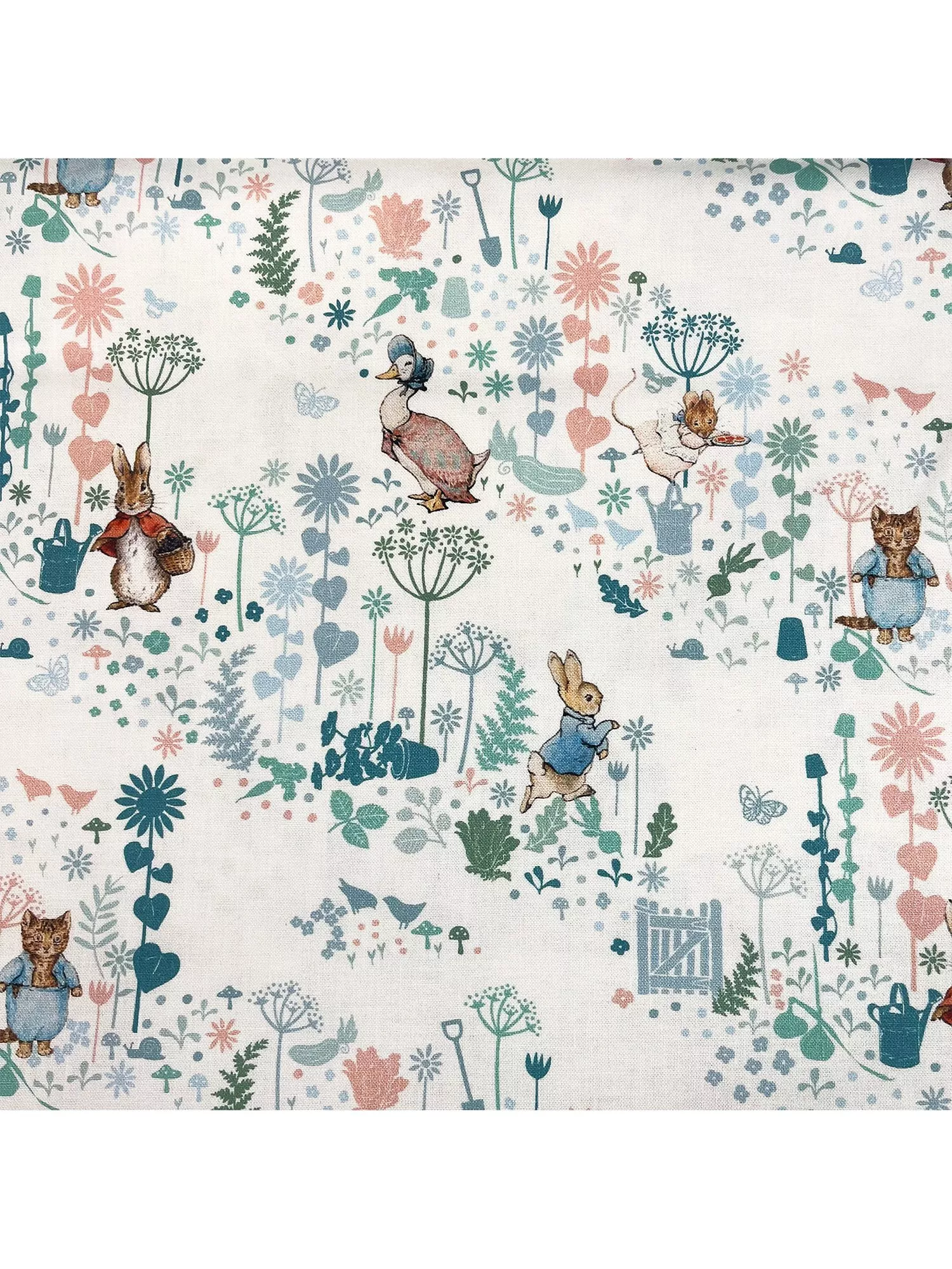 Made from pure cotton this fabric features a Beatrix Potter print and is suitable for dressmaking and craft projects.