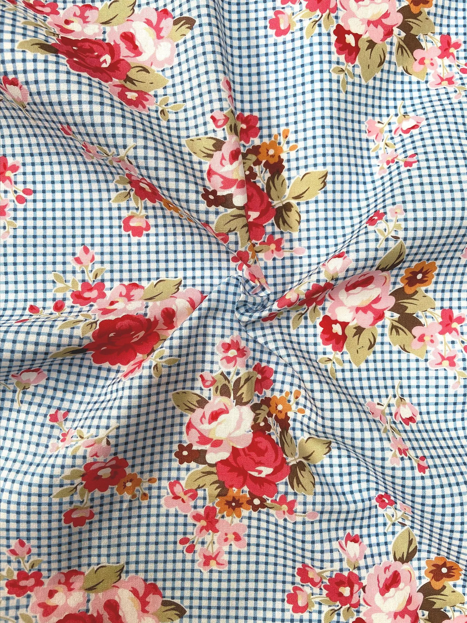 Viscount TextilesGingham & Roses Cotton Lawn Fabric, Multi