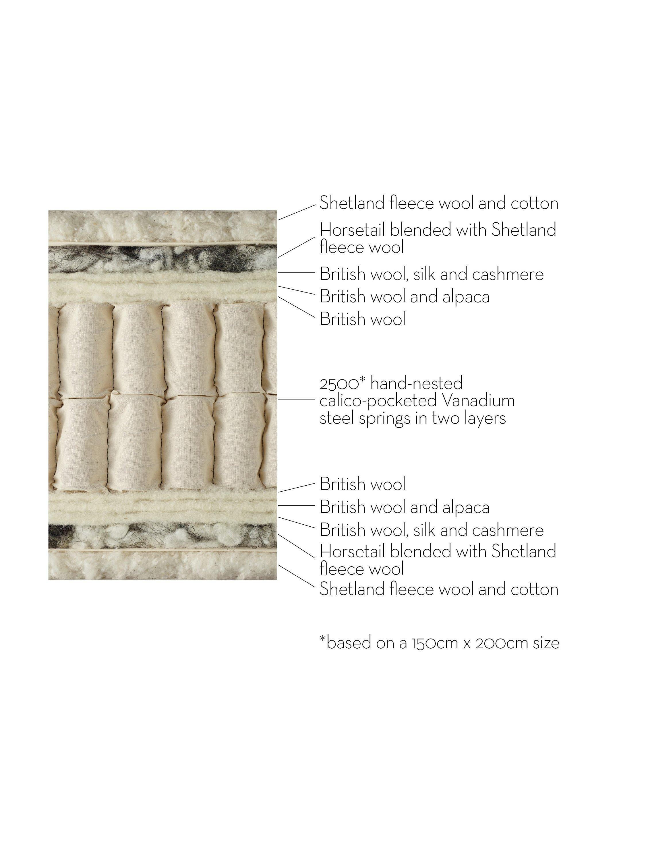 The Richmond is a traditionally handcrafted mattress using opulent materials such as silk and cashmere. In addition to the softness provided by its blend of natural fillings, it introduces a slightly firmer feel, ensuring a harmonious blend of comfort and support.
