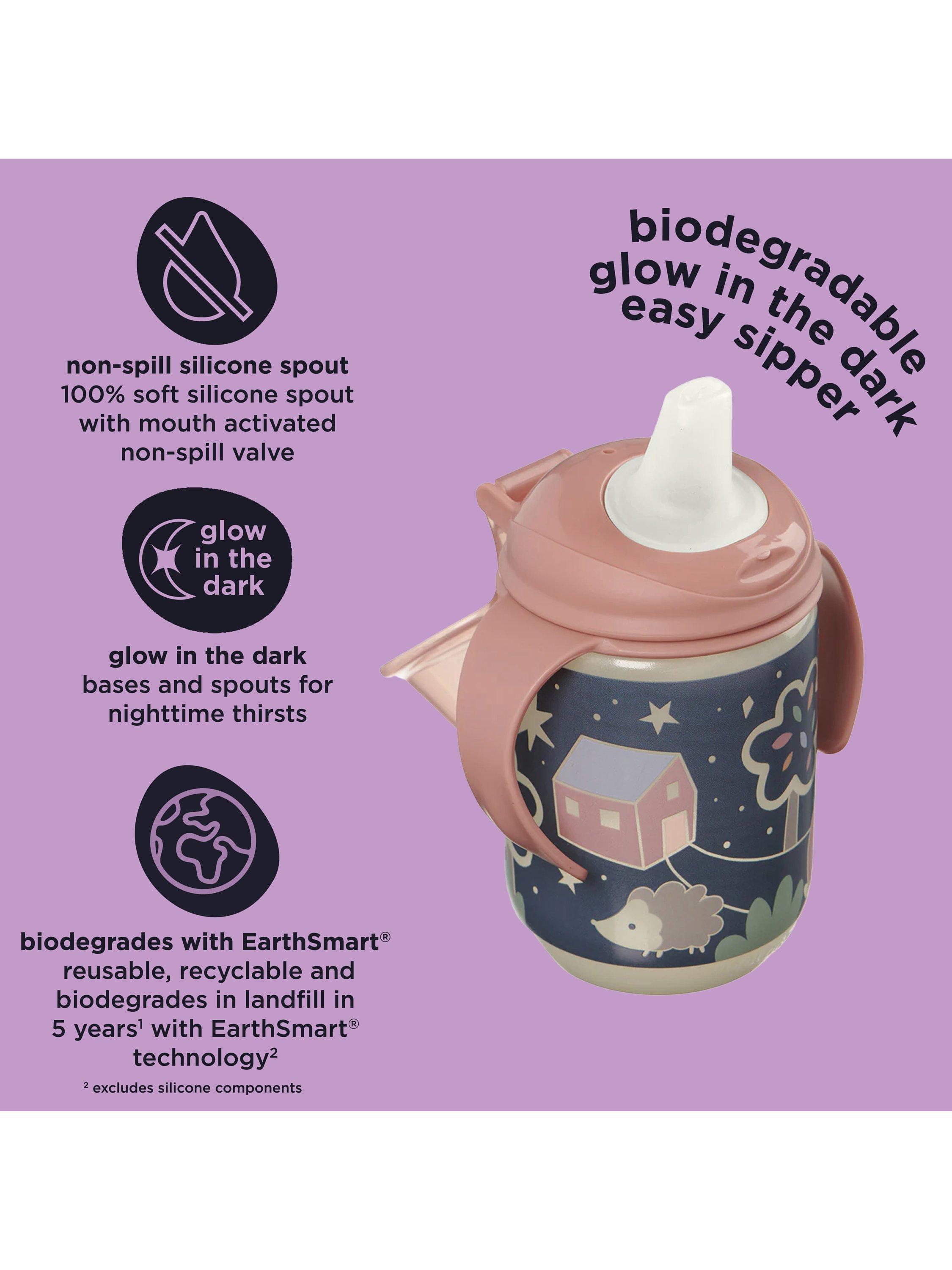 When it’s time for bed and the lights go out, the cup and spout glow in the dark so your little one can find it without a fuss.