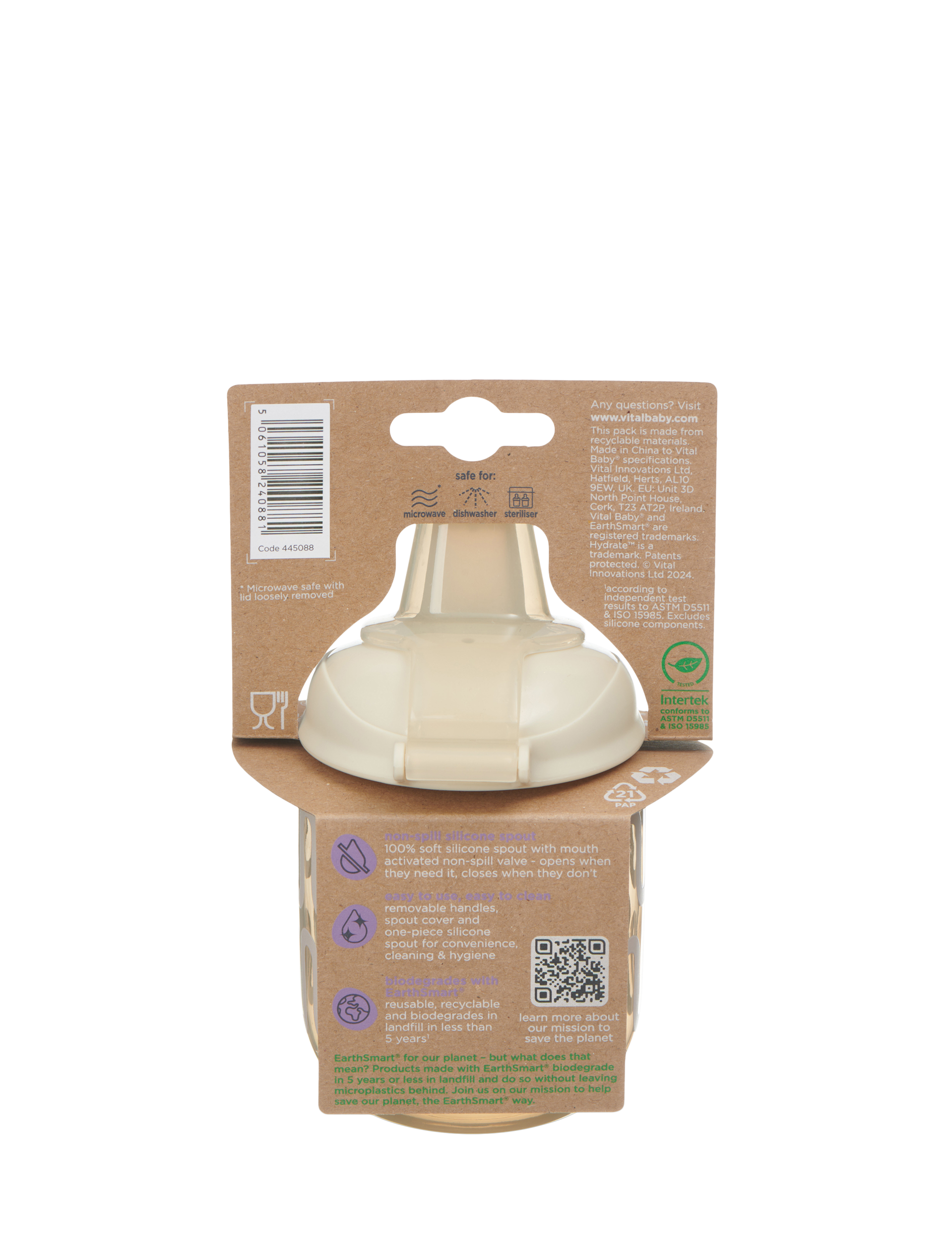 The non-spill, durable 100% silicone spout is gentle on budding teeth and gums, with a fully integrated valve for easy cleaning and to prevent bacteria build-up. Plus, the flip-close hygiene cover keeps the spout safe from germs and dirt when it’s not in action.