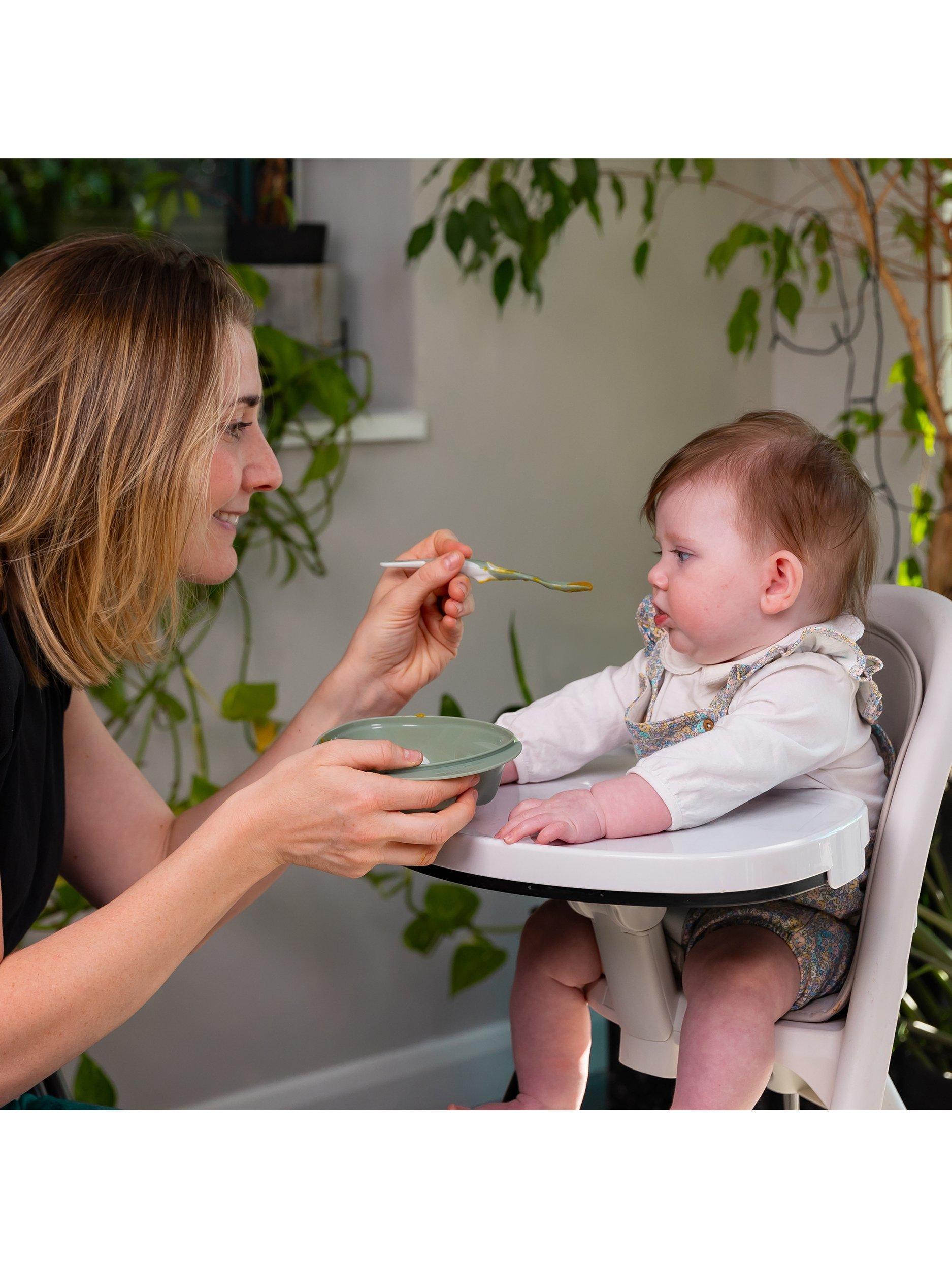The scoop feeding bowl has scooped sides and channels to help parents and baby to easily scoop every drop of food. Integrated mashing zone allows you to mash food using the back of the spoon, and the lid with integrated spoon cover makes this set perfect for on-the-go weaning.