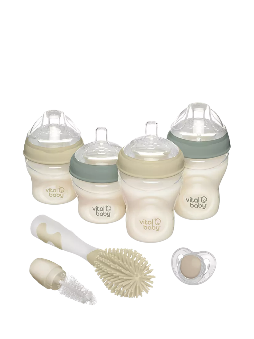 Everything you need to successfully feed your newborn is in this breast-like starter set from Vital Baby.