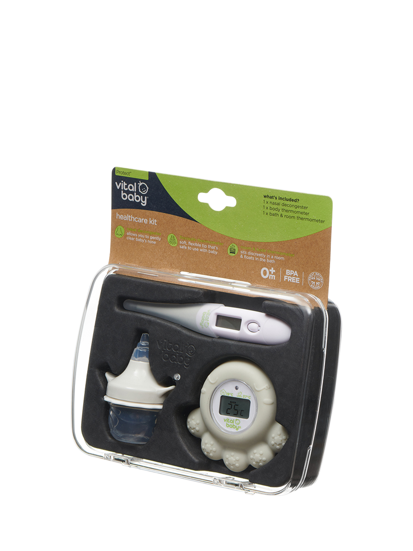 Designed to give you peace of mind and reassurance when caring for your baby, the award-winning Vital Baby Protect healthcare kit contains essential items you will need throughout your parenting journey.