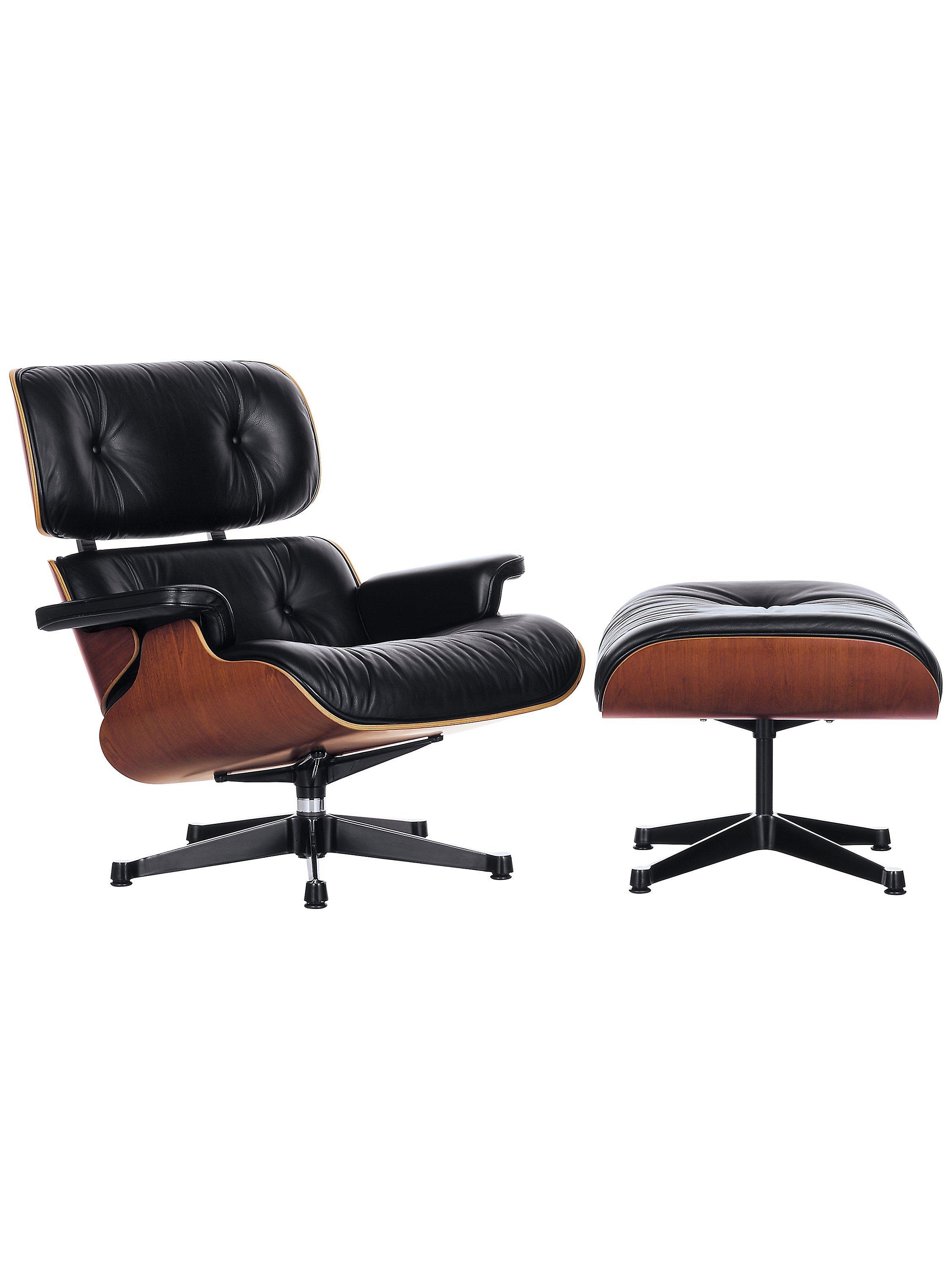 - Composition - Seat and back shells: moulded plywood, face veneer, lacquer finish. Chestnut (Central Europe) -- Upholstery/cover: removable cushions made of recyclable polyurethane foam, removable covers in fabric (only by trained enginner) - - Base: five-star swivel base or four-star non-swivel base (Ottoman). Both base and back braces in die-cast aluminium.