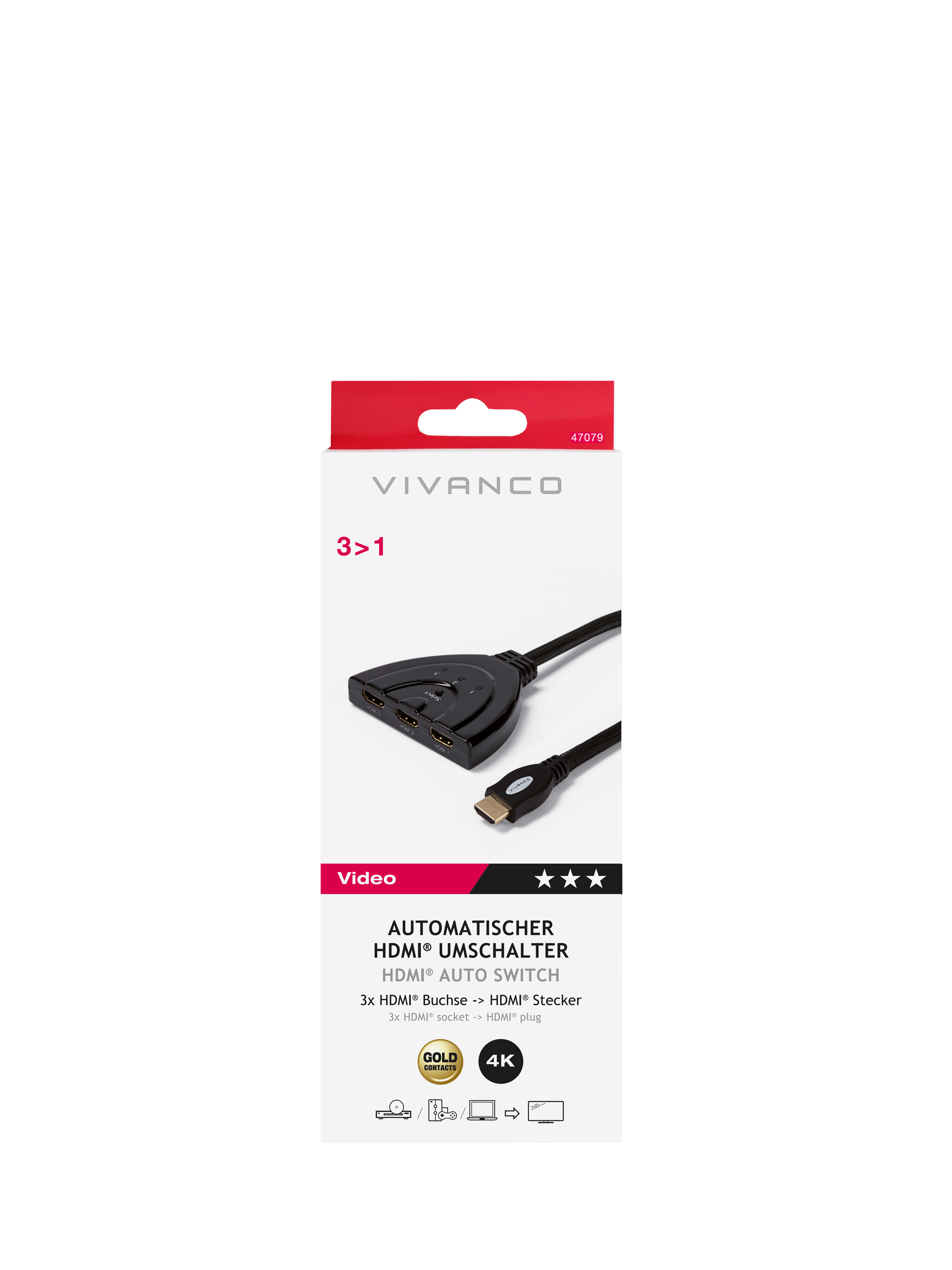 This 3-way HDMI switcher gives you easy switching between multiple devices connected to a single TV.