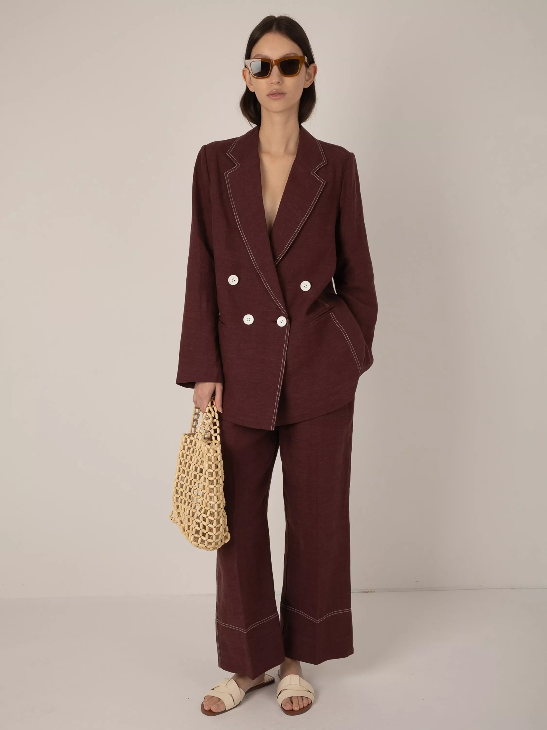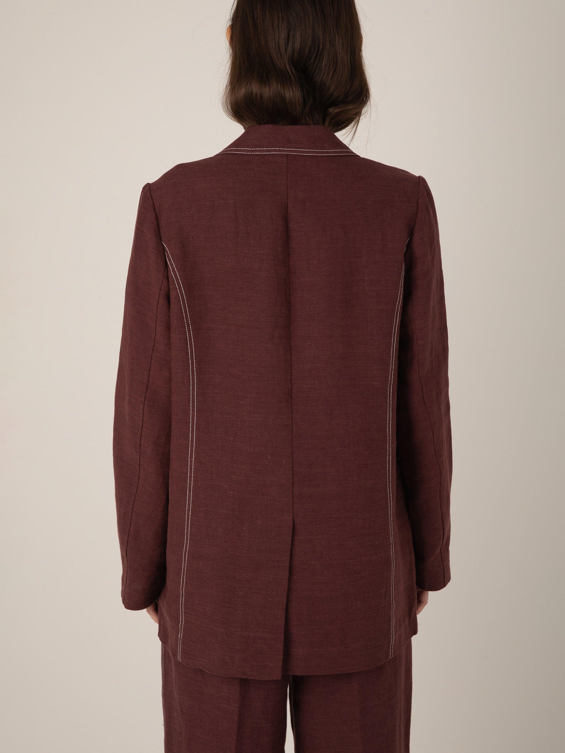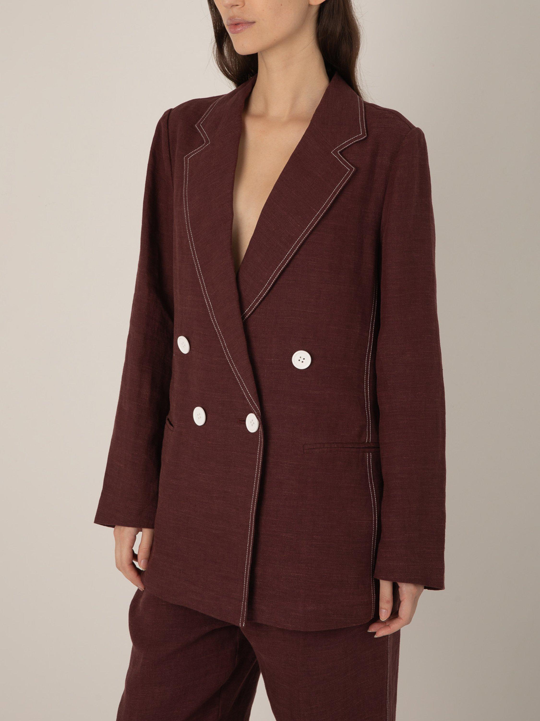 VIVERE’s tailored blazer brings sharp style and comfort to your plans. Fully lined for easy layering and detailed with white contrast buttons and stitching, its natural linen build keeps you feeling fresh.