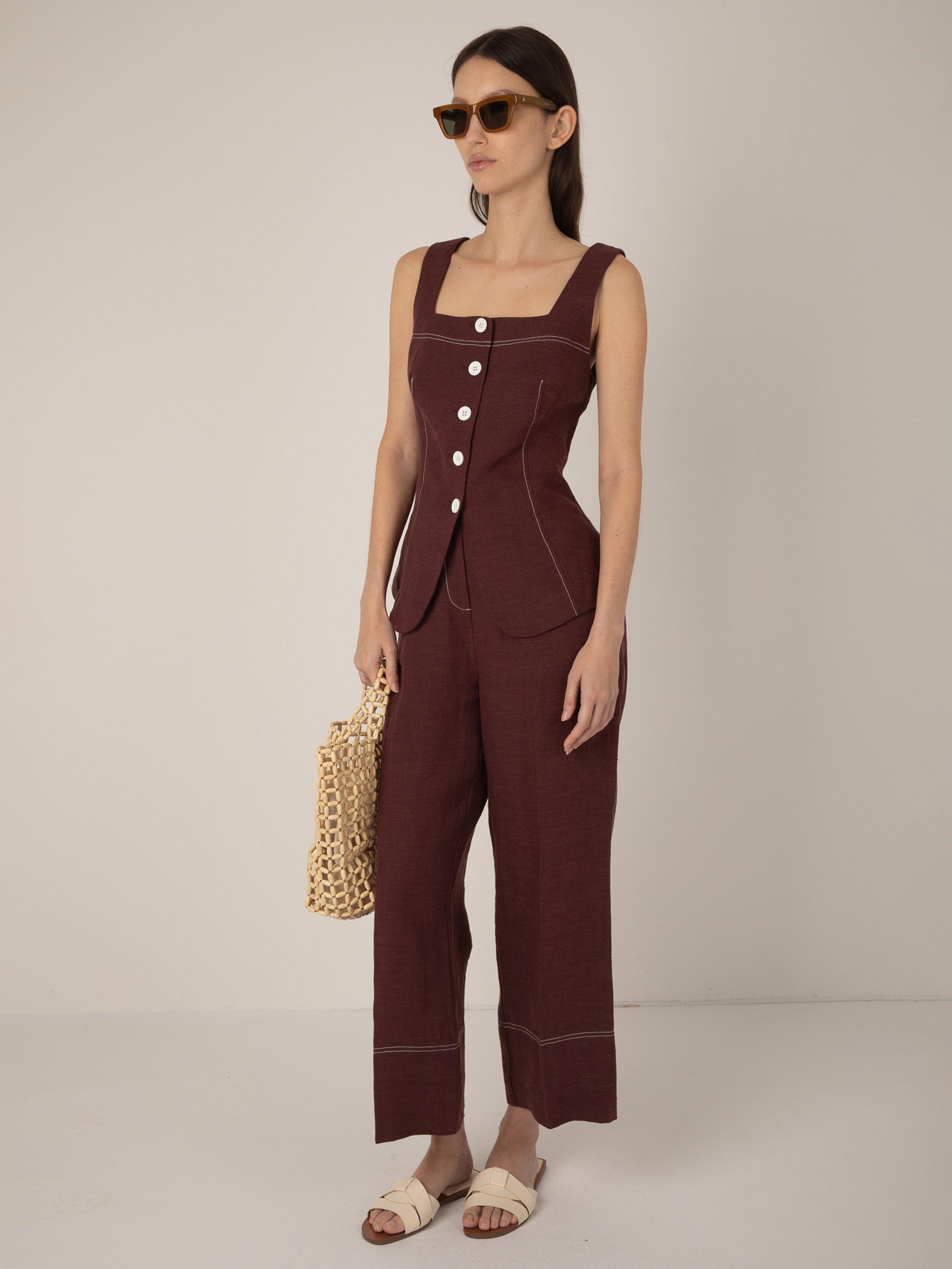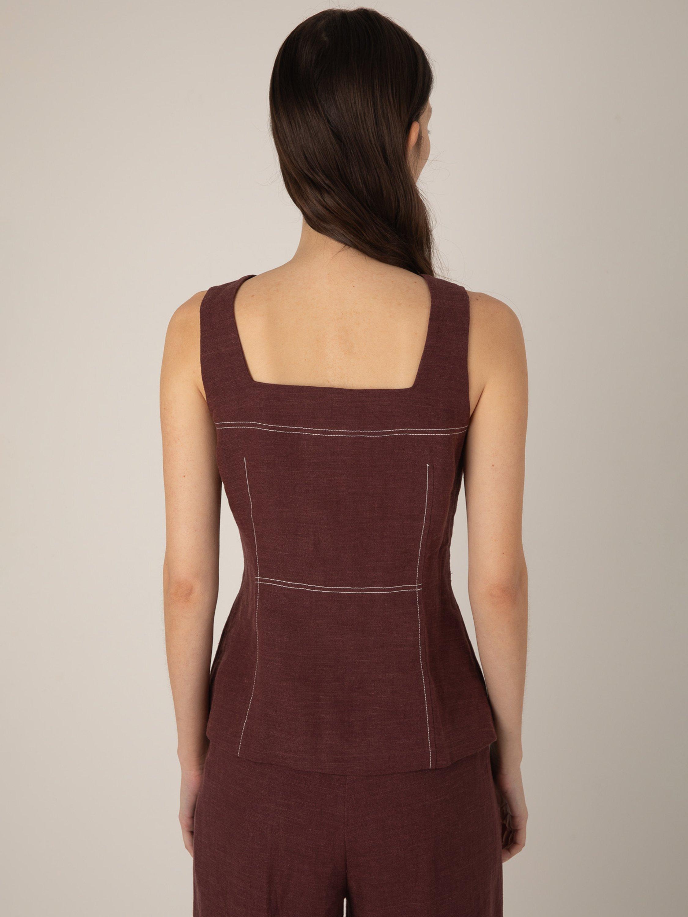 Simple and versatile button top by VIVERE, made from pure linen offering breathable comfort. Featuring a square neck and contrast button fastening, it features structured contrast seams and a flared hem. A modern summer staple.