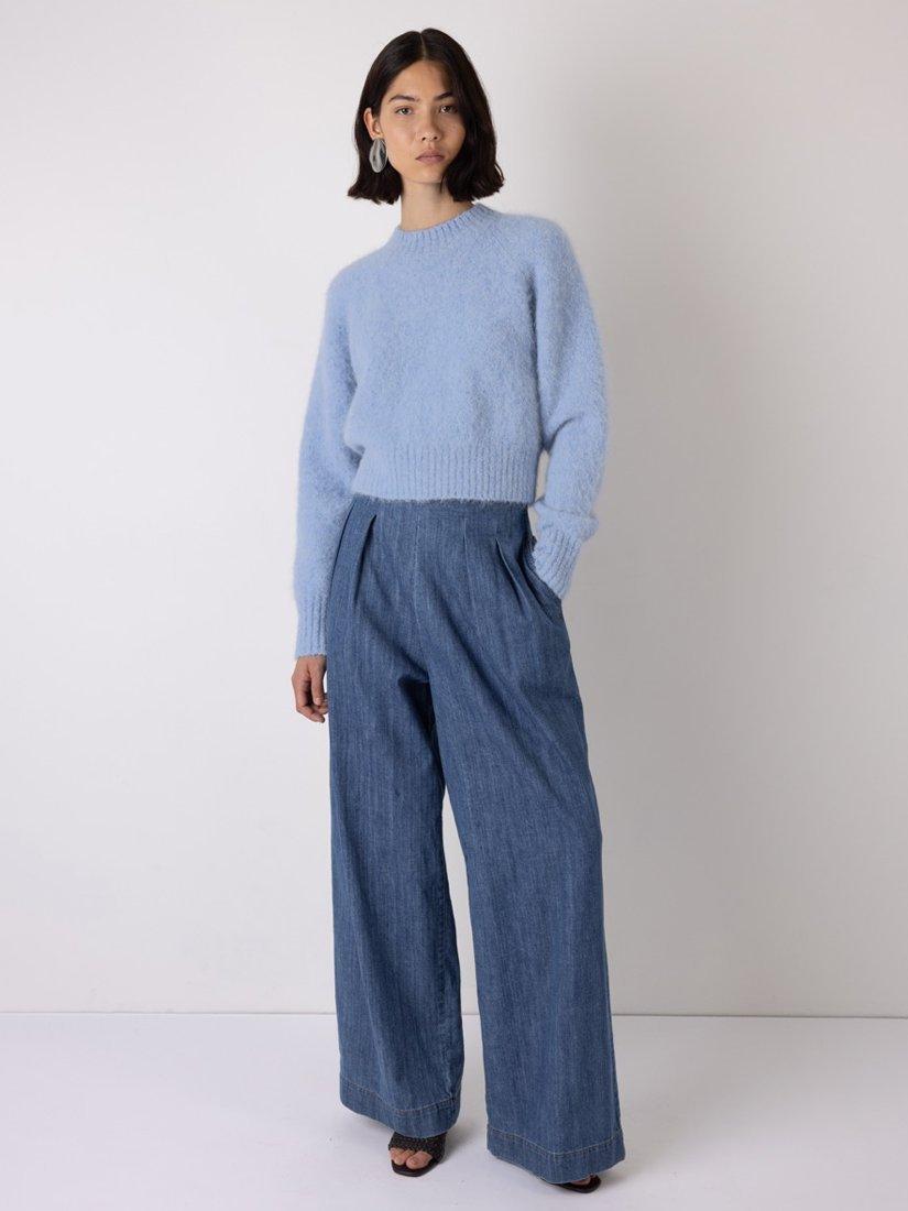 Guaranteed warmth. This jumper is made from a luxurious alpaca blend with nylon, which adds softness to the yarn. A touch of stretch in the fabric makes it even more comfortable to wear. It's finished with contrasting ribbed cuffs, hem and classic crew neckline.