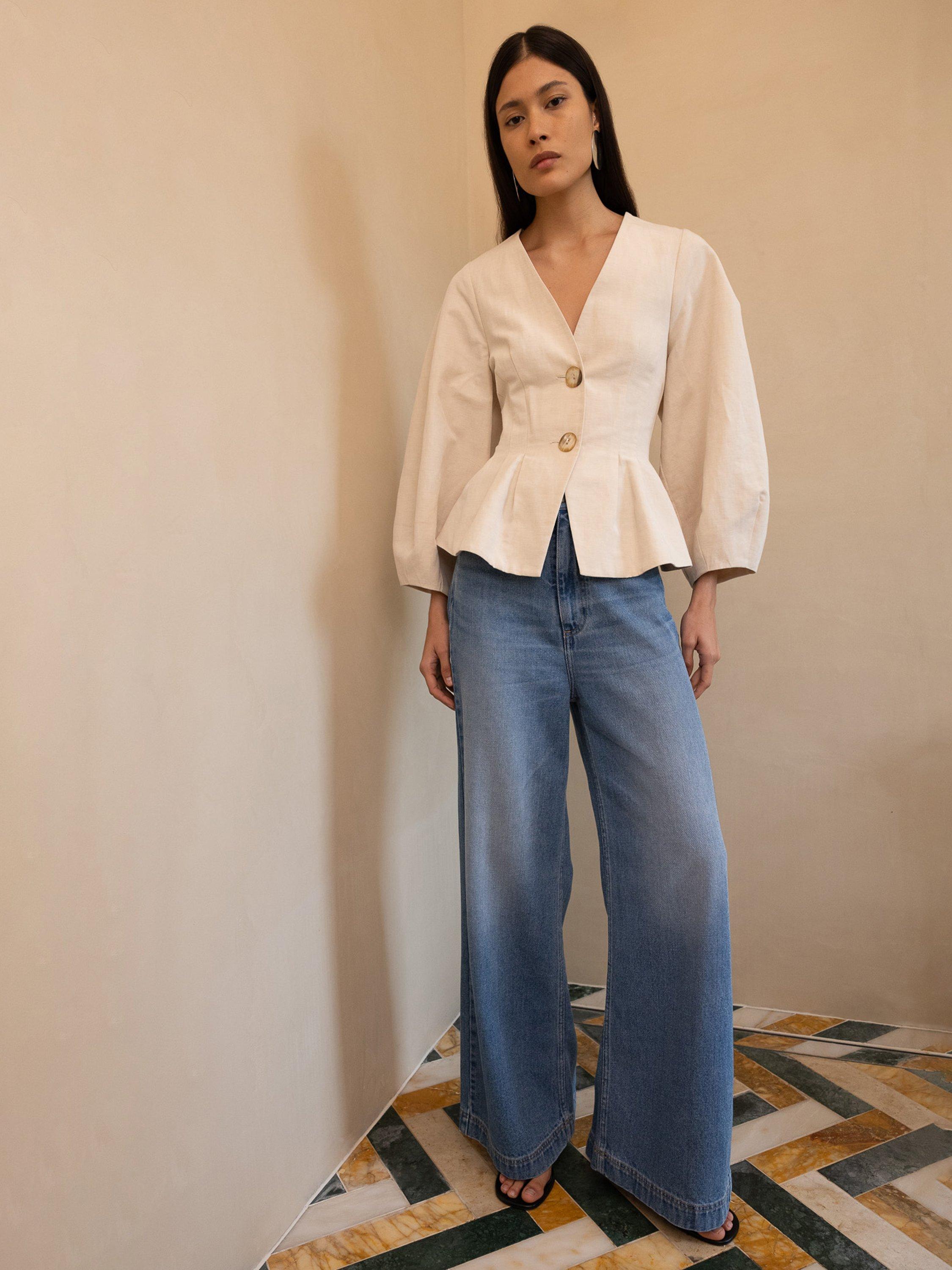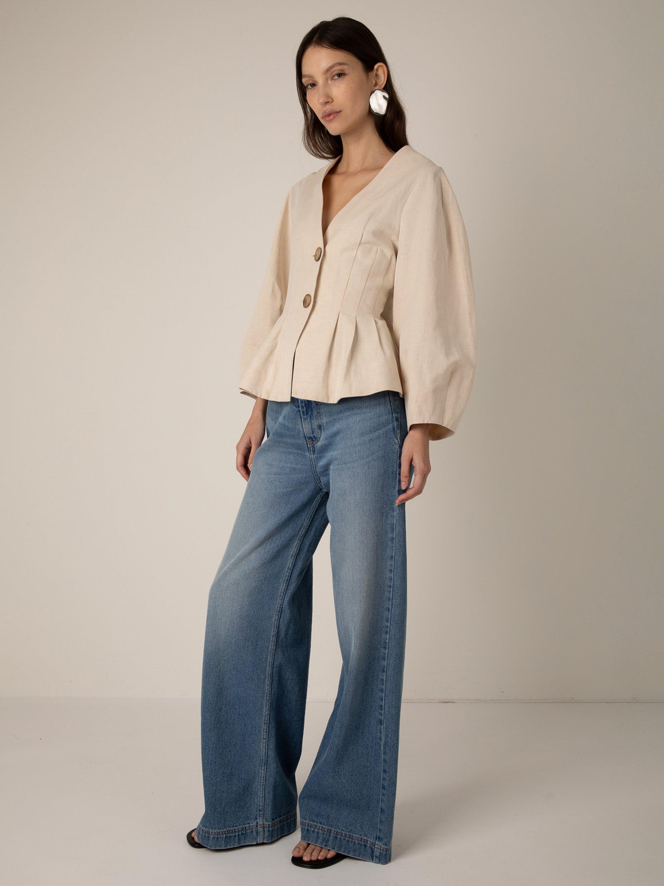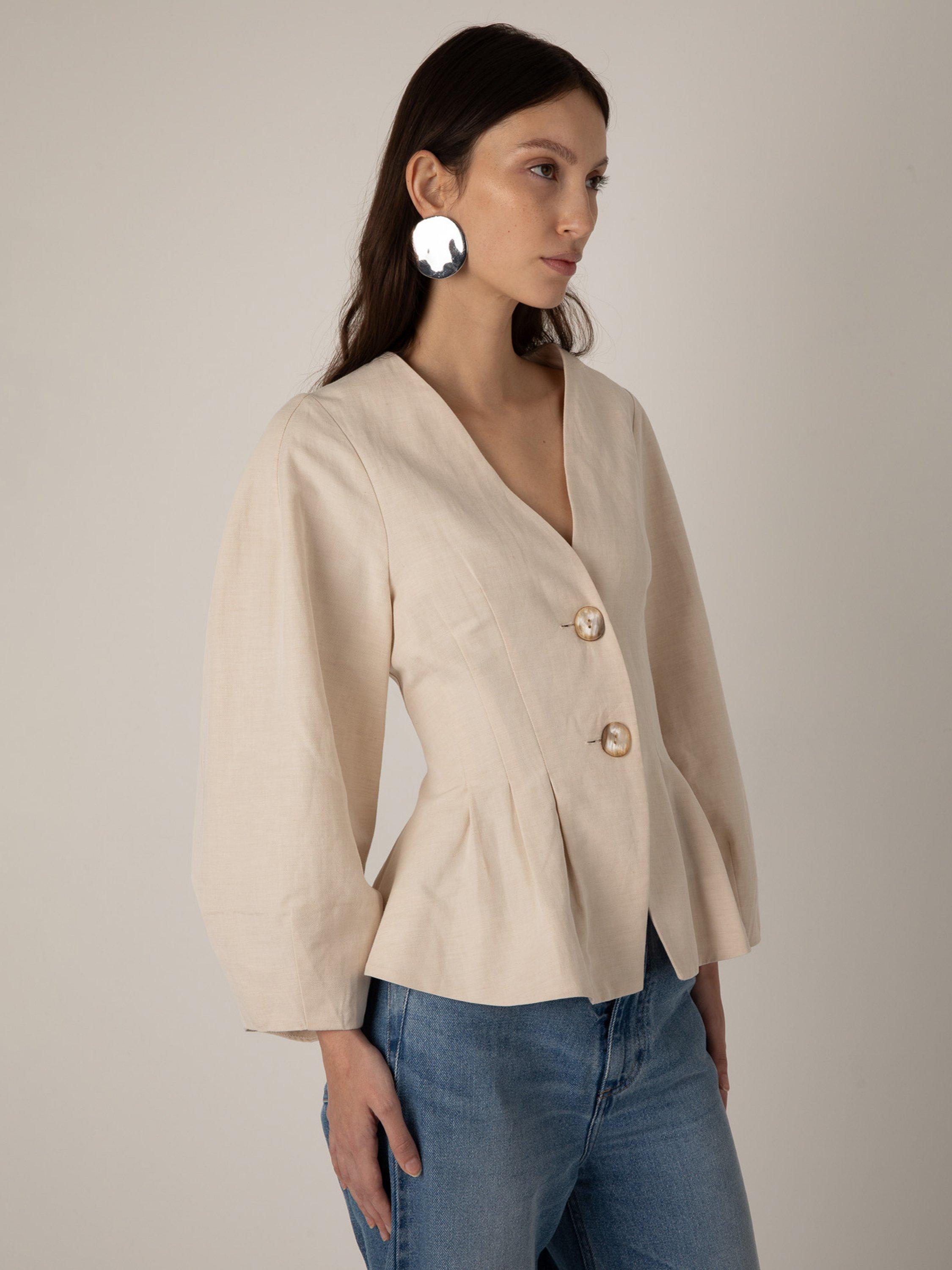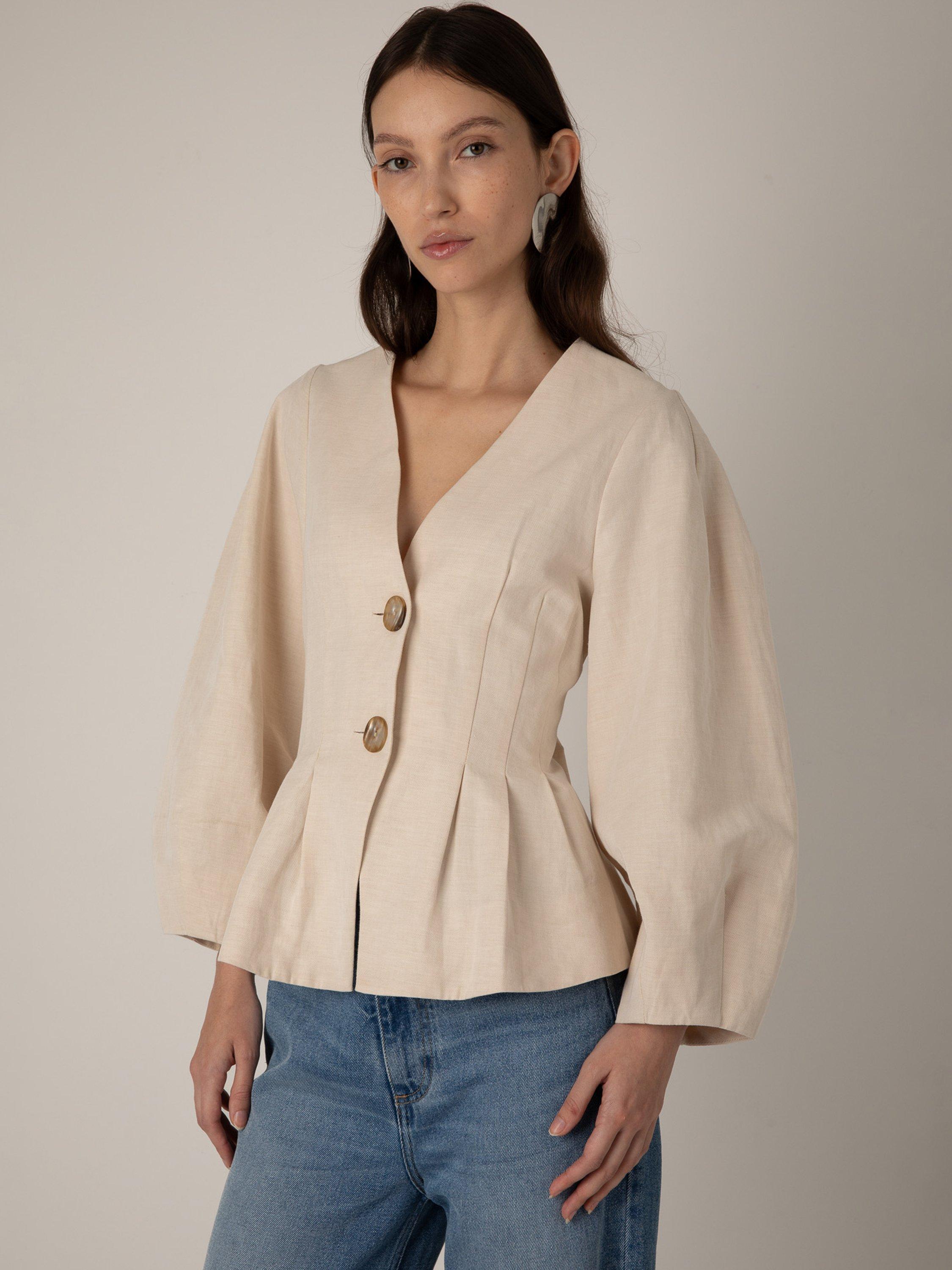 This VIVERE blazer brings ease to your plans. The deep V-neckline, sculpted bodice and soft lining give you structure that feels comfortable, finished with abstract buttons for closure.