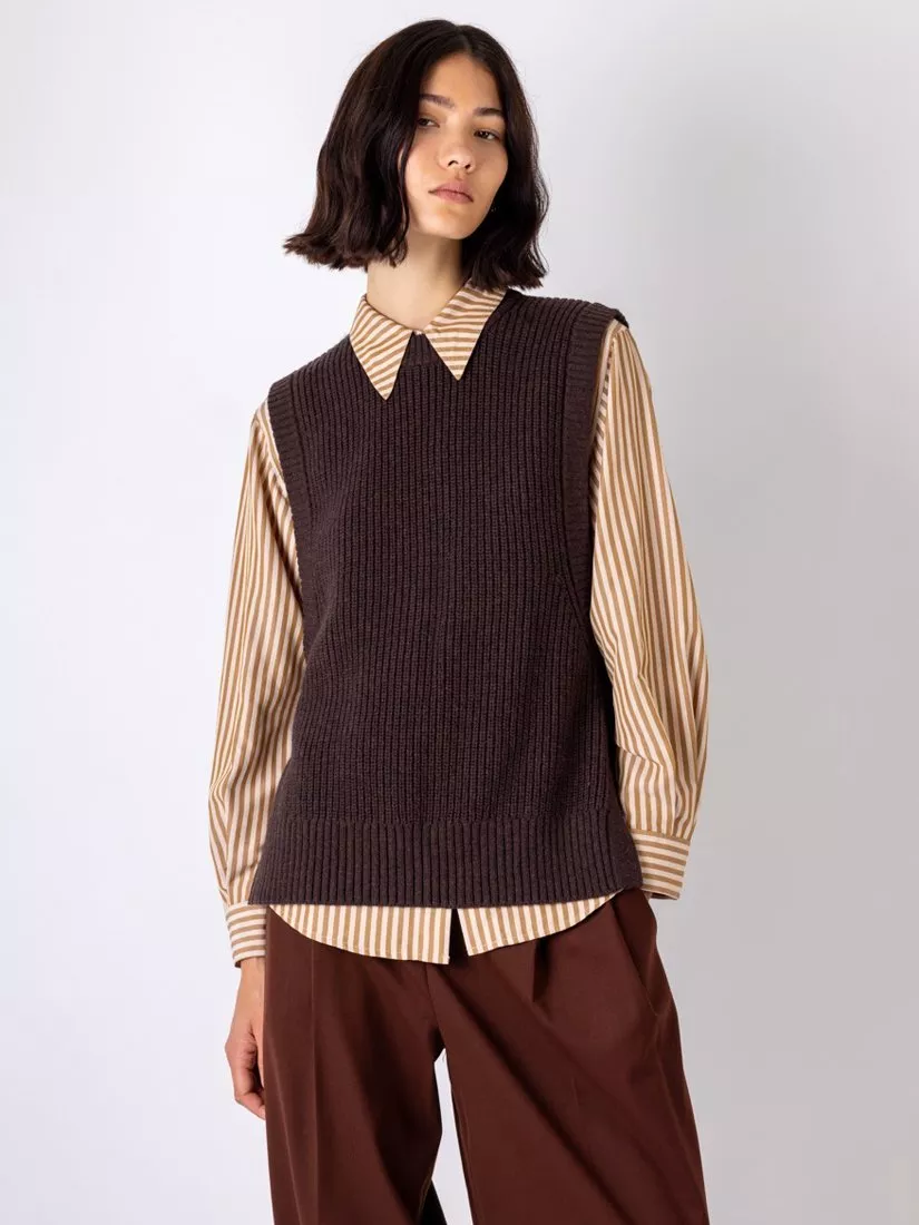 Sleeveless tank top in a ribbed knit that recovers its shape after stretching. Styled with a round neckline and side-split hem, this piece is knitted from a luxurious blend of wool and mohair, with nylon adding softness to the yarn and a touch of stretch in the fabric for comfort.