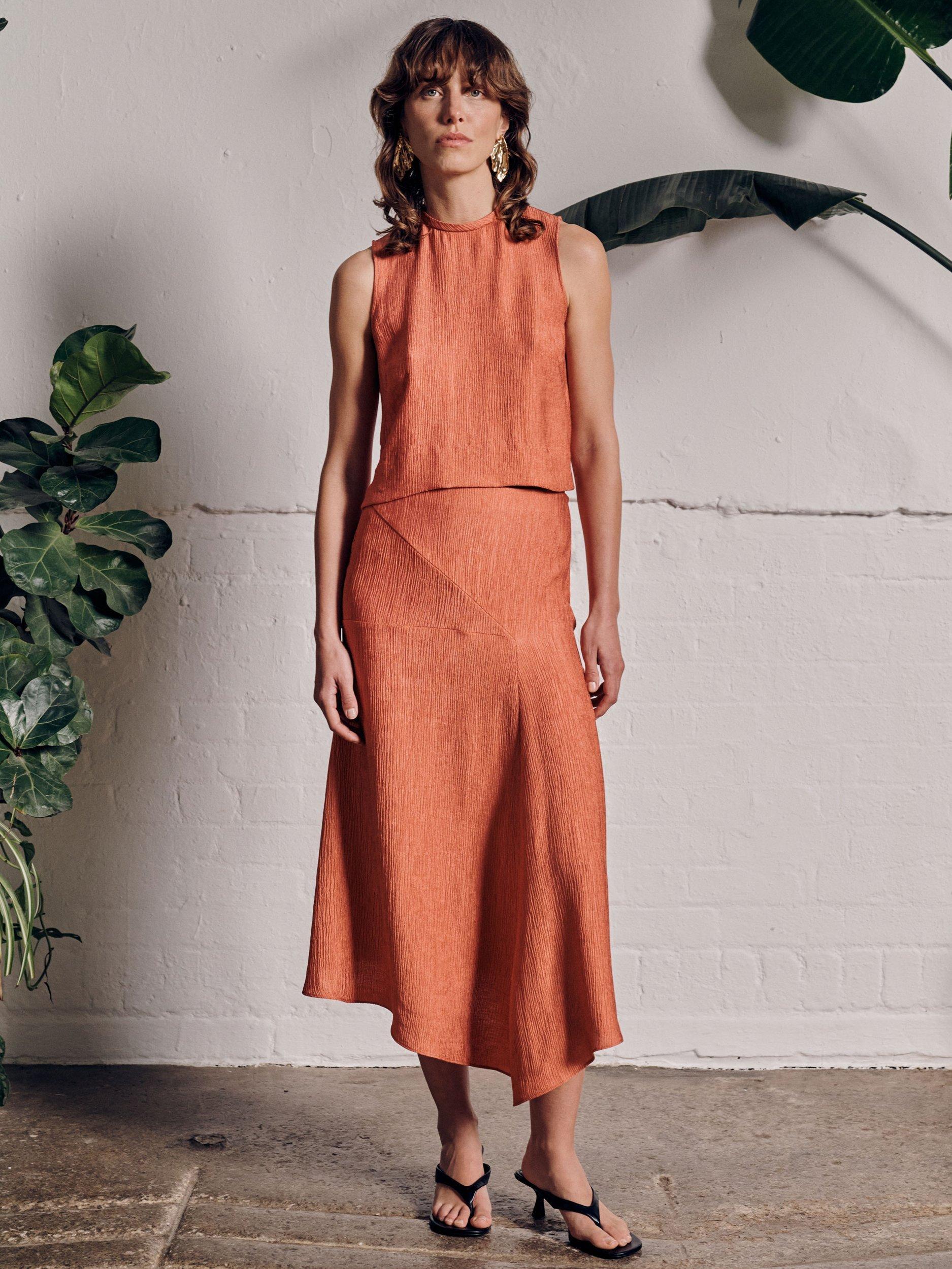 With drapery that beautifully sculpts the body, this midi skirt by VIVERE needs no prints or accents to hold the spotlight. Crafted from an airy viscose blend and sitting at the waist, it's evocative of laidback sunny days thanks to its zingy hue.