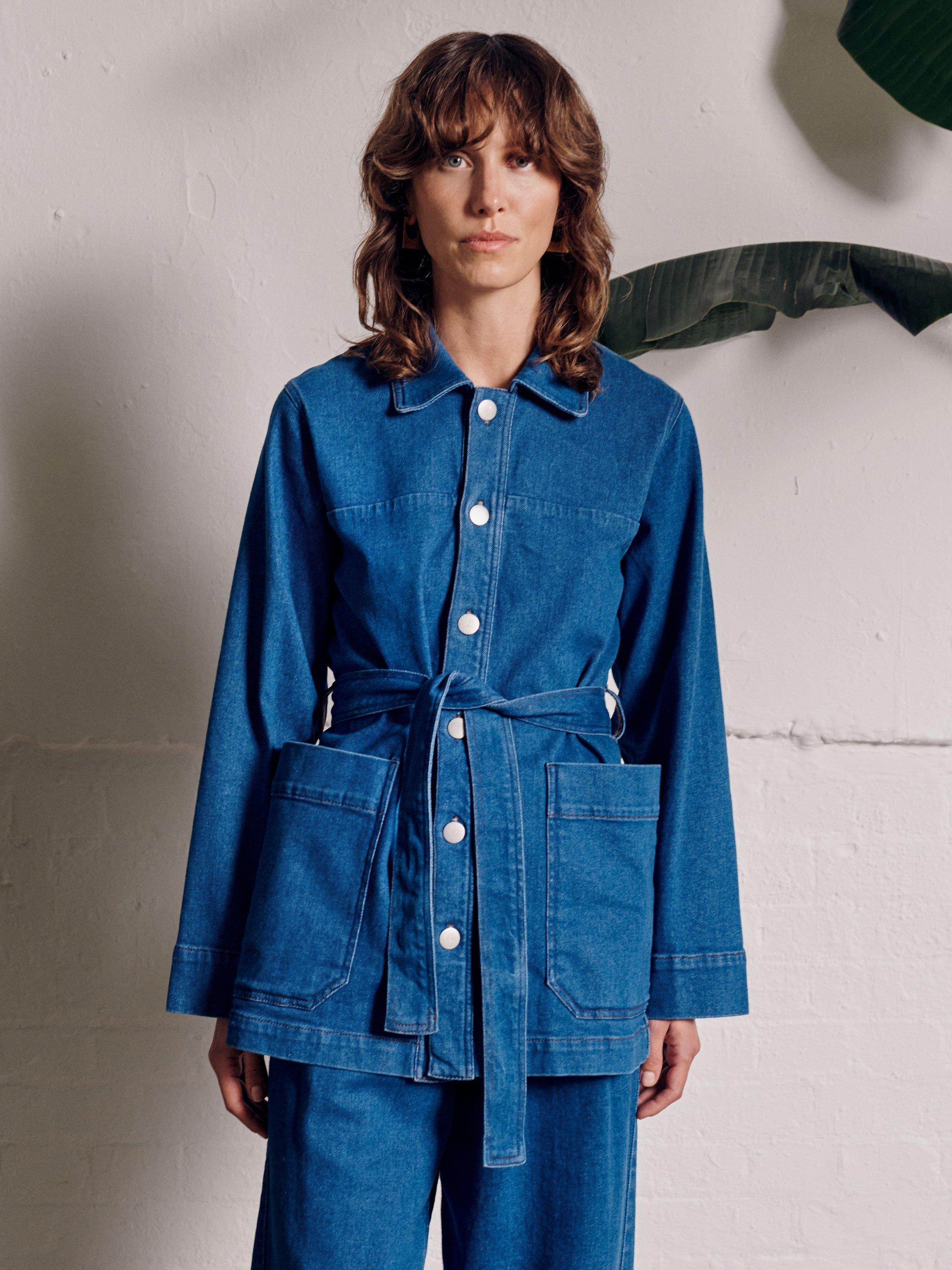 Easily layering over weekend attire, this longline jacket by VIVERE is made from cotton-denim for breathable comfort. With a collar neck and a belted waist, it's perfect for wrapping over everything whether day or night.
