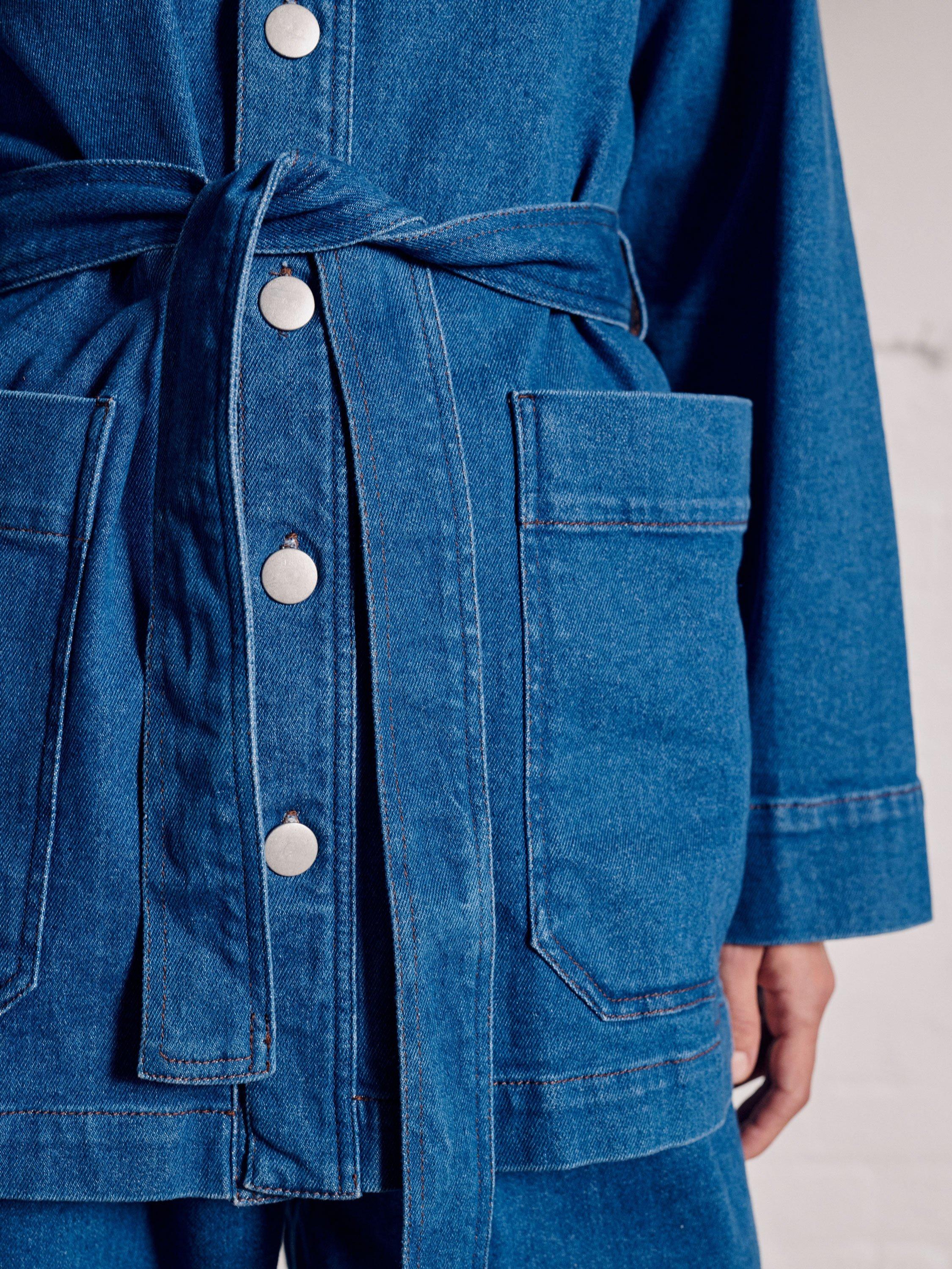 VIVEREMacy Belted Longline Denim Jacket, Blue