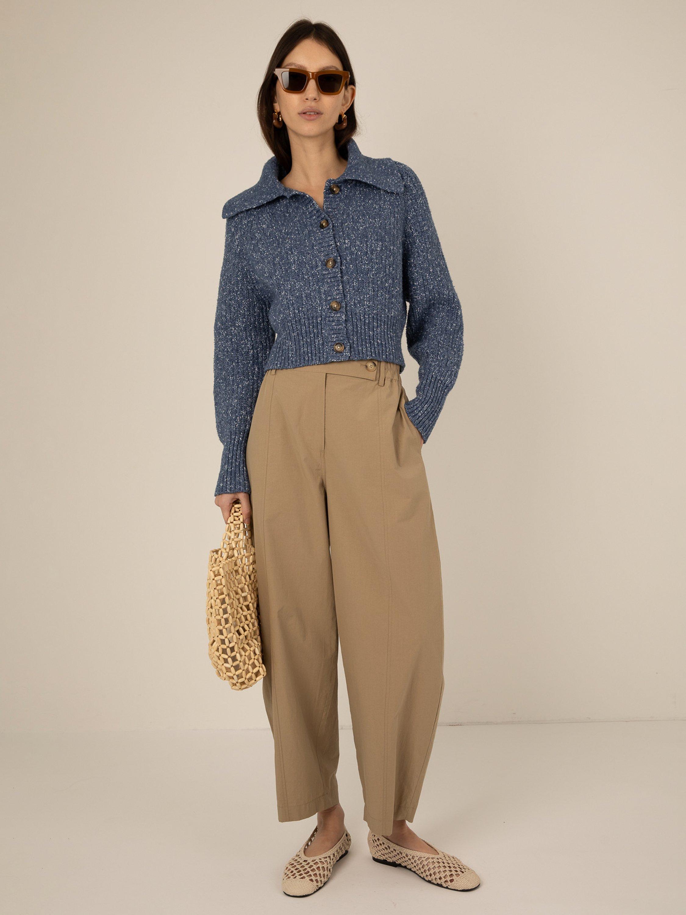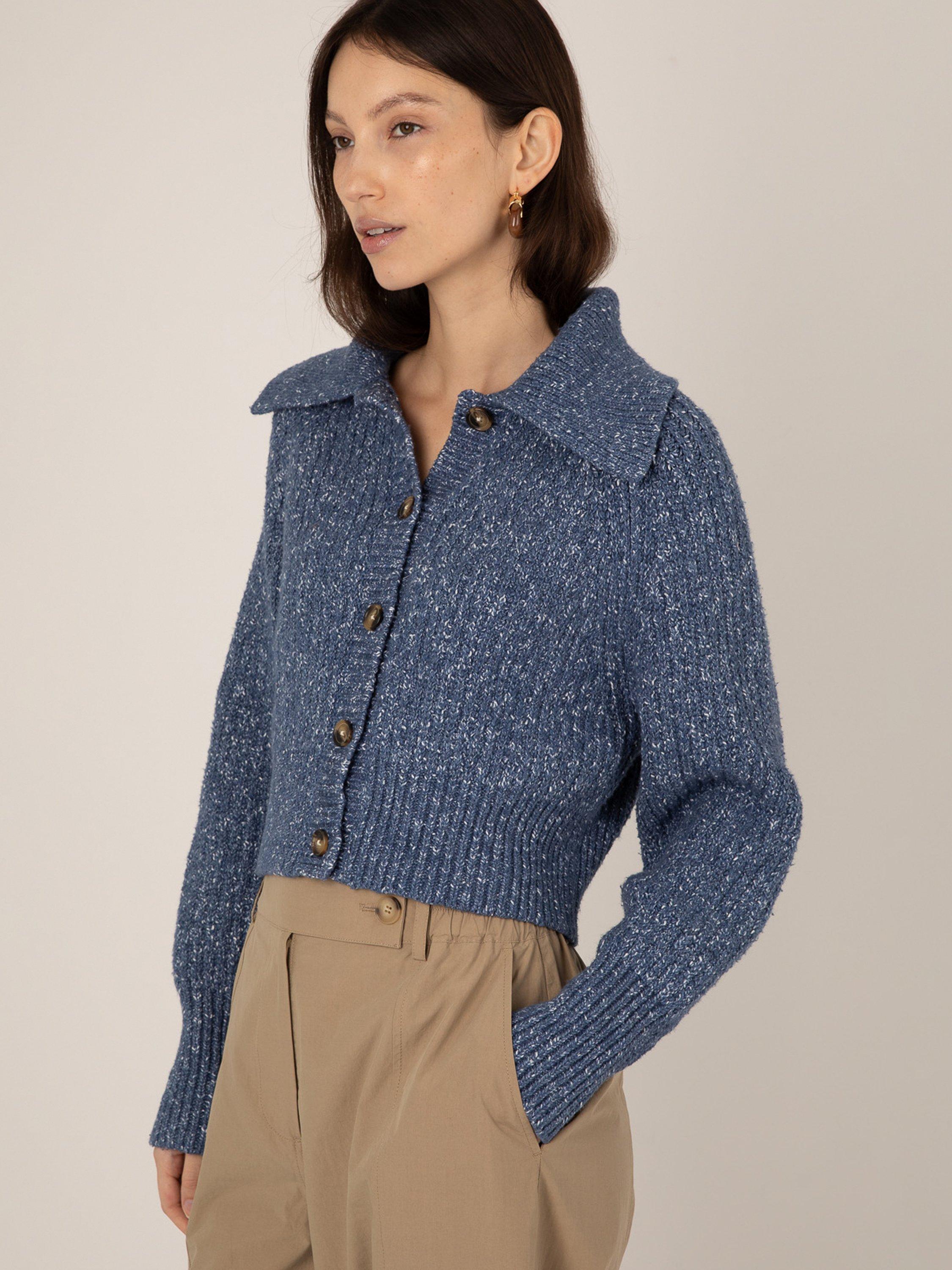 A chunky, textured cardigan from VIVERE. The oversized fit and playful puff sleeves wrap you in pure cotton, offering you contemporary comfort.