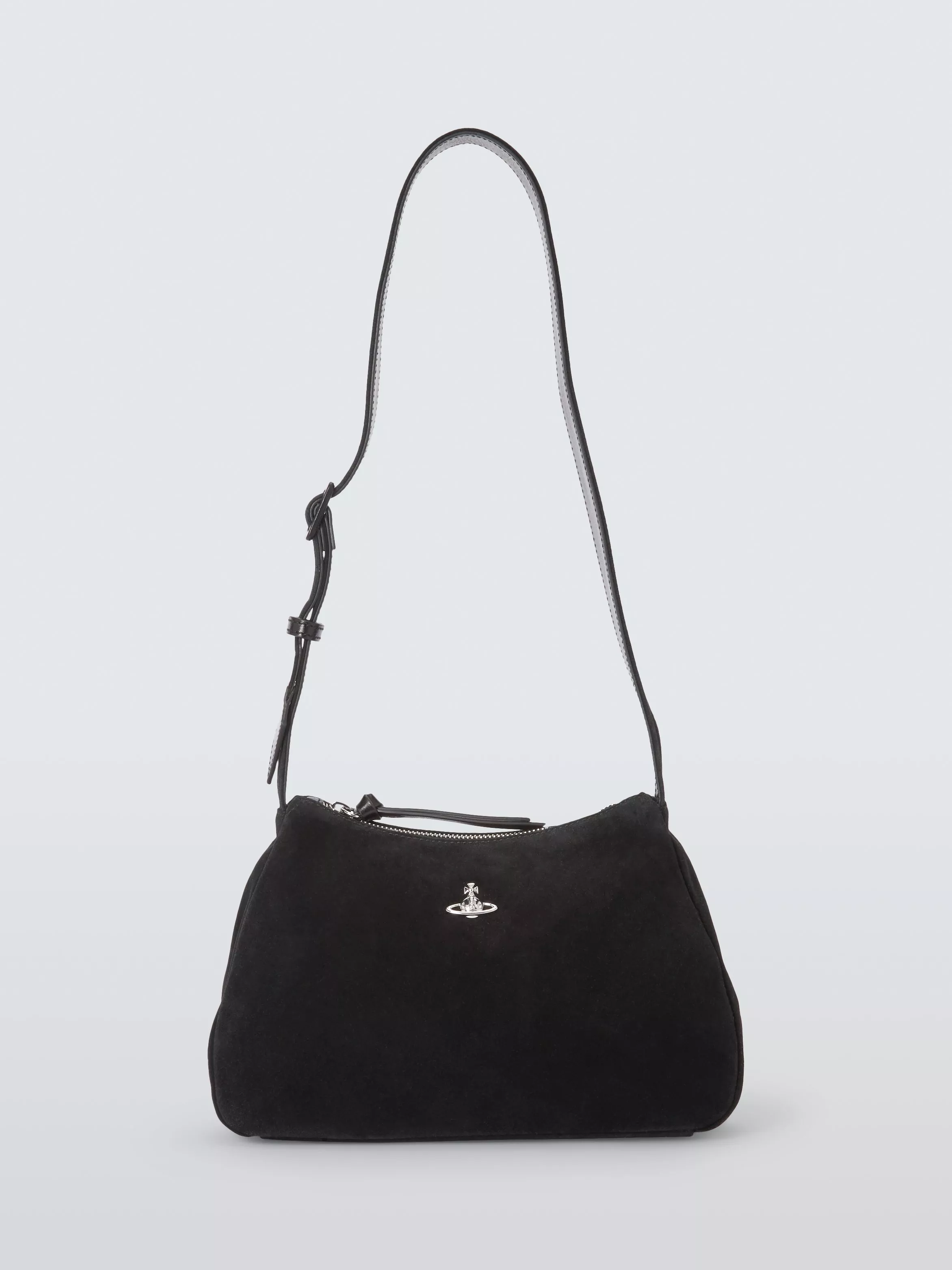 Made from supple calf suede with a zip fastening, soft lining, and adjustable strap, this shoulder bag features Vivienne Westwood's signature orb-shaped motif for a confident, everyday statement.