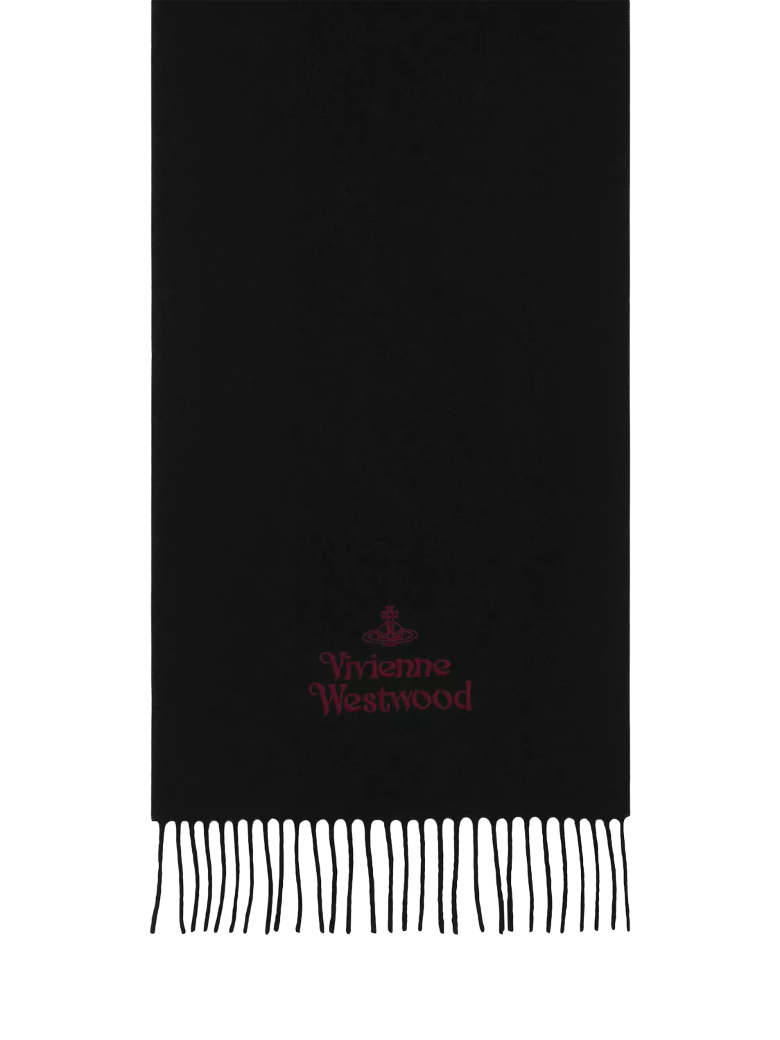 Made from 100% soft wool, this scarf is designed in classic rectangle shape, with the brand's iconic orb symbol and fringing detail.