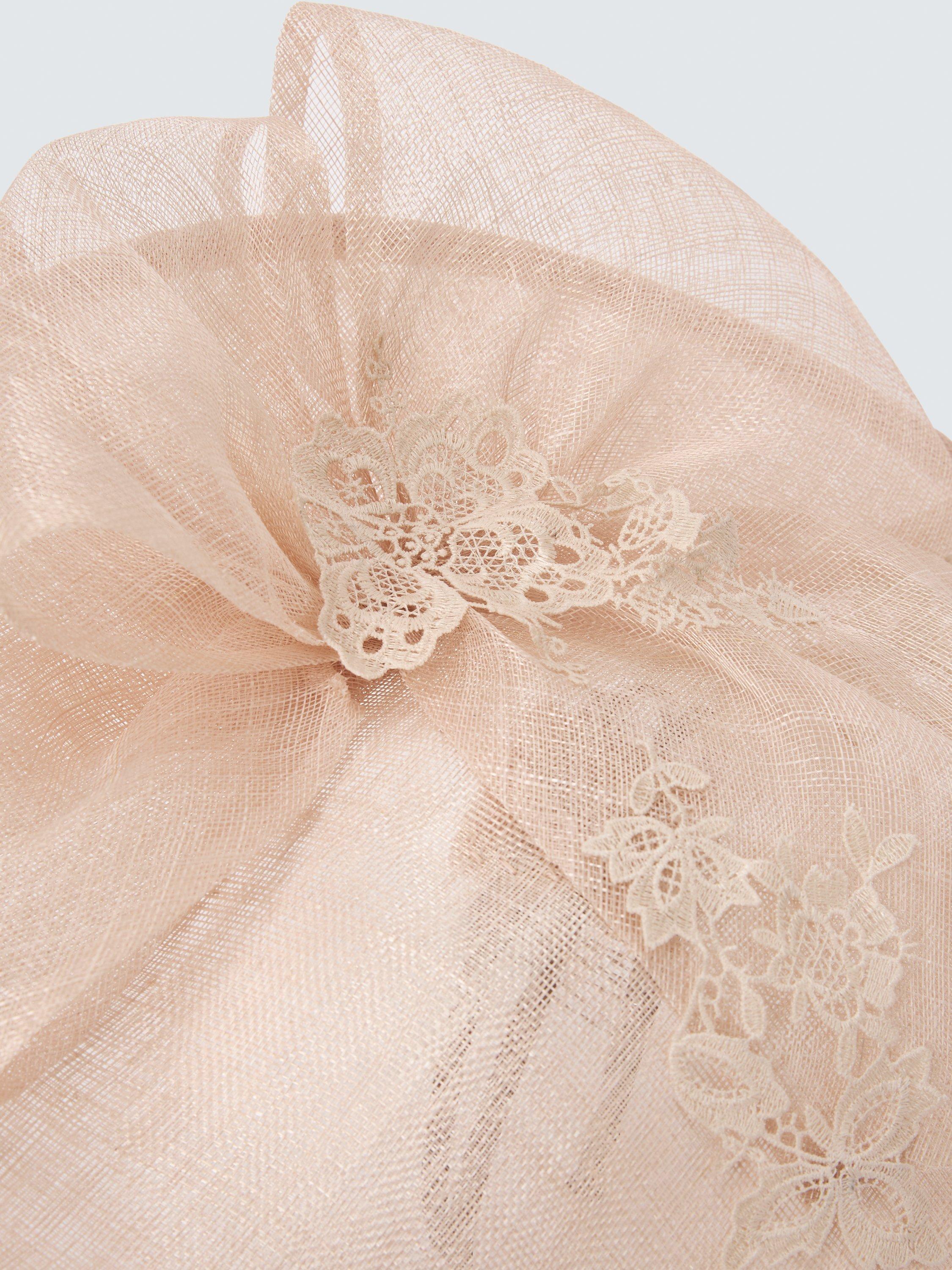 An elegant, large fascinator with charming crinkle and lace detailing.