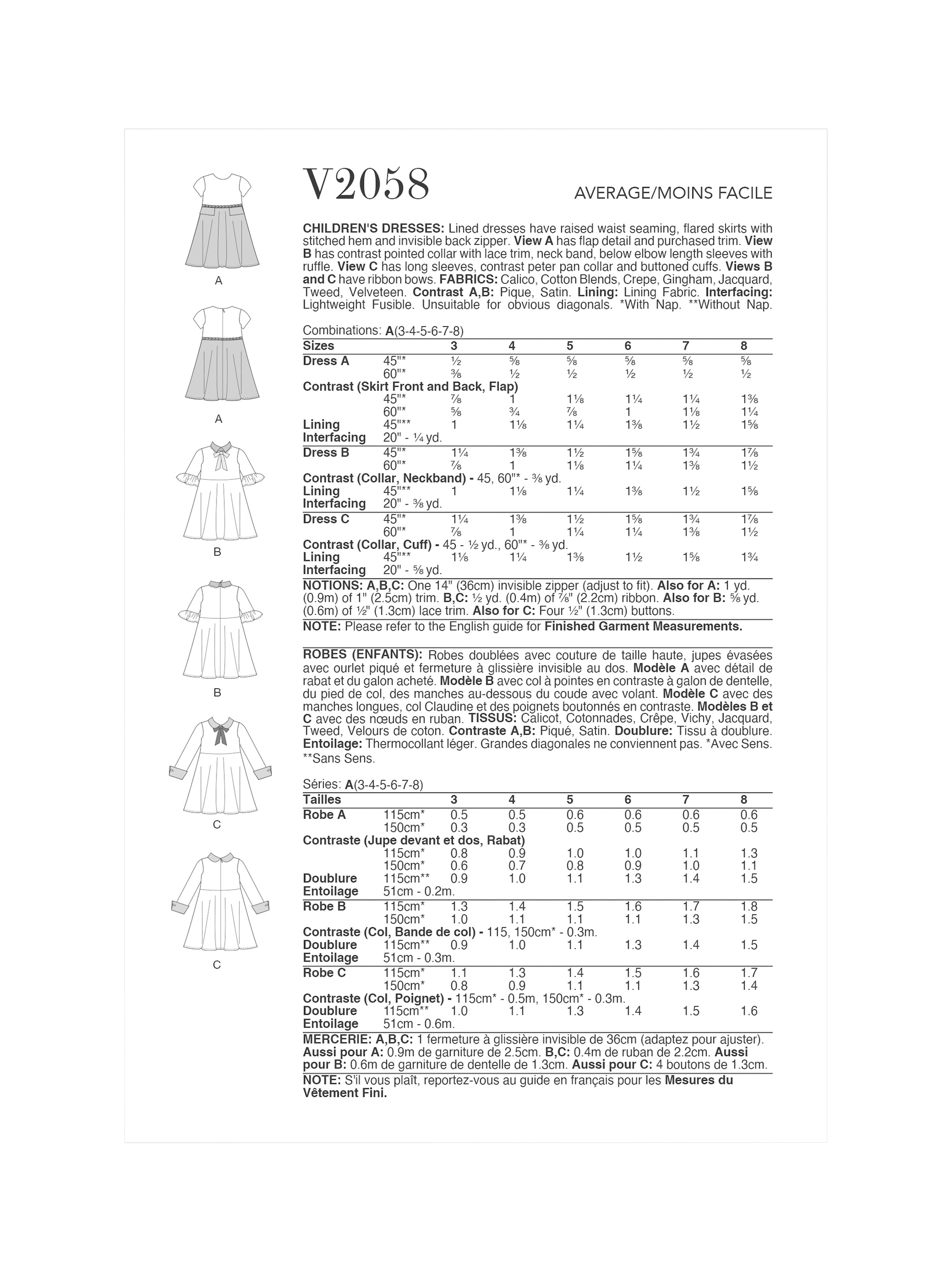 SimplicityVogue Children's Dresses Sewing Pattern, V2058