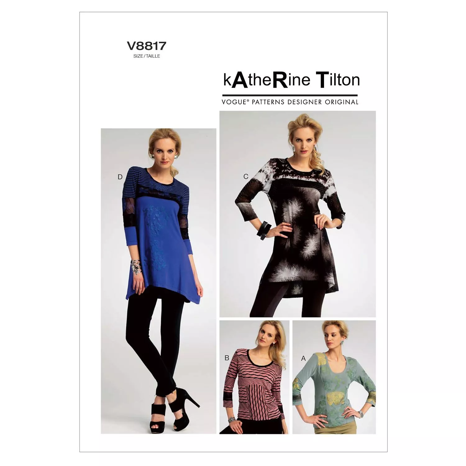 Created by Katherine Tilton this sewing pattern from Vogue creates a variation of stylish tops and tunics for her with Tilton's iconic screen printed patterns.