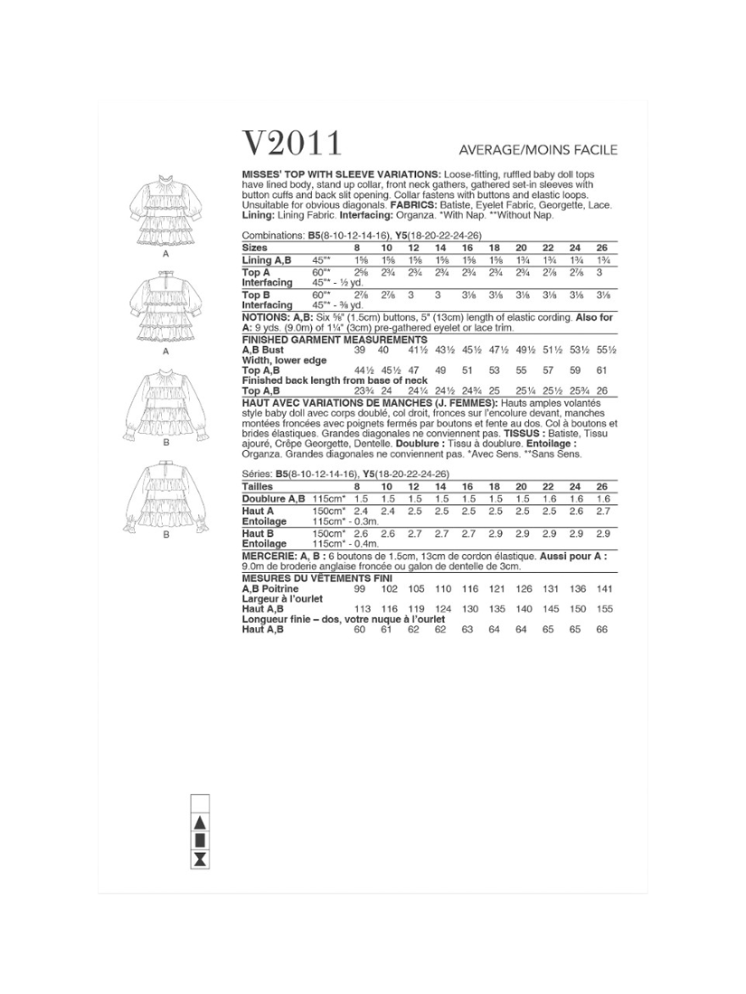 SimplicityVogue Misses' Baby Doll Tops Sewing Pattern, V2011