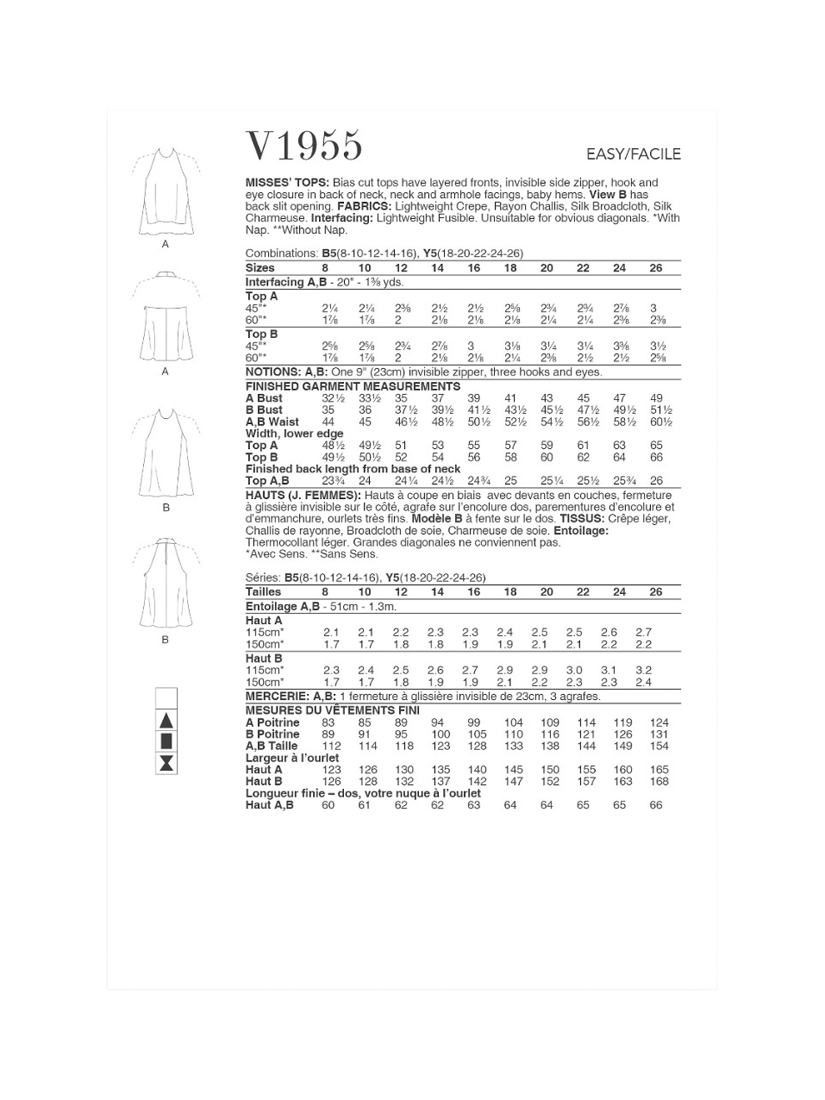 SimplicityVogue Misses' Bias Cut Tops Sewing Pattern, V1955