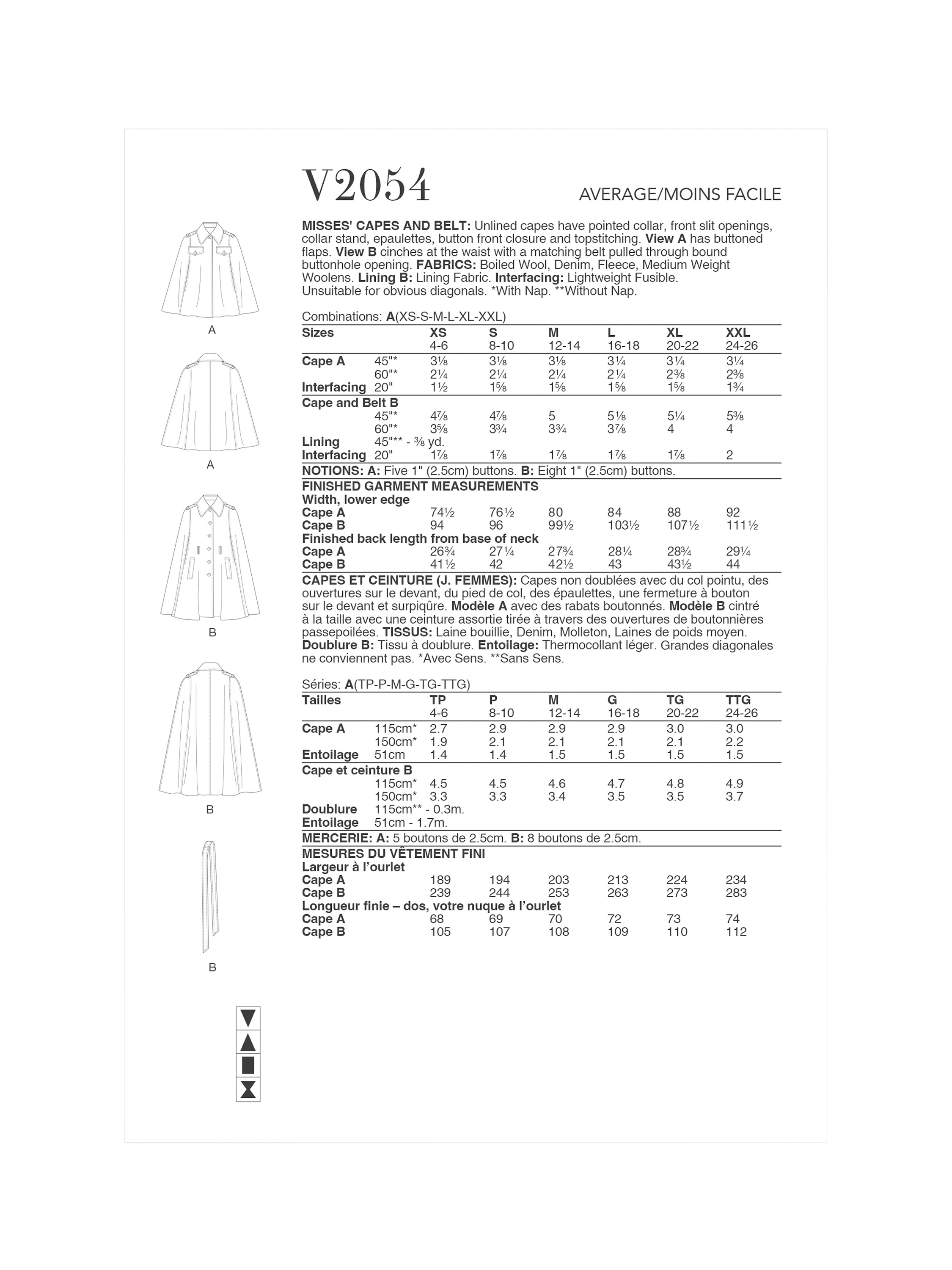 SimplicityVogue Misses' Capes Sewing Pattern, V2054