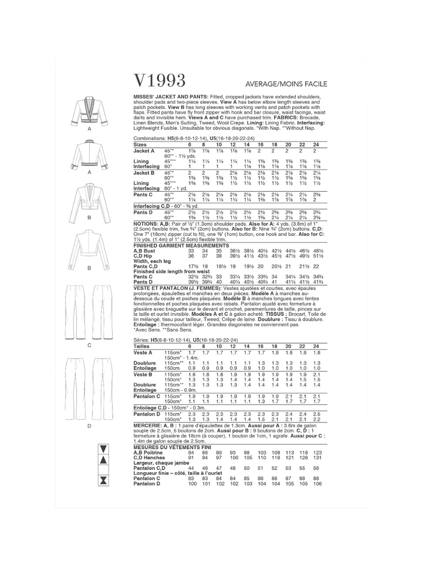 SimplicityVogue Misses' Fitted Jacket, and Pants Sewing Pattern, V1993