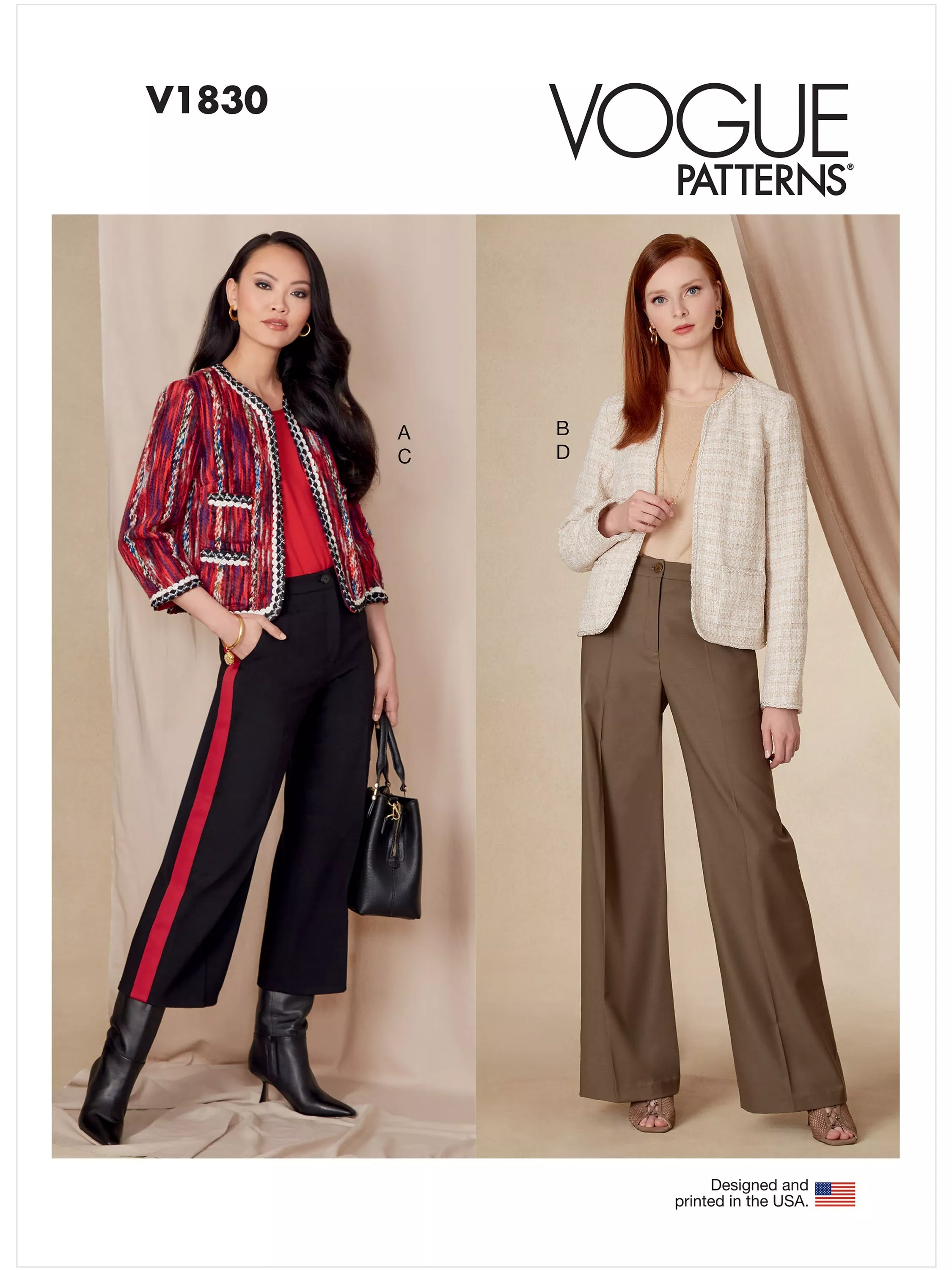 VogueMisses' Fitted Jacket & Wide Leg Pants Sewing Pattern, V1830, F5