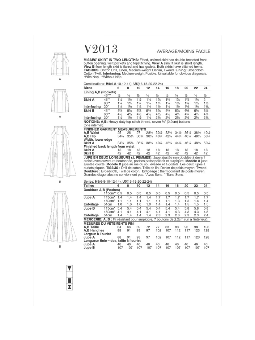 SimplicityVogue Misses' Fitted Skirt Sewing Pattern, V2013