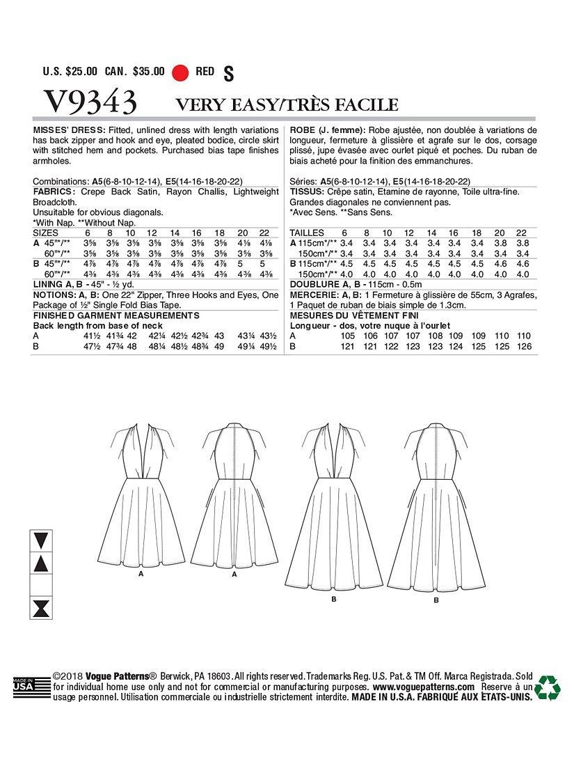 VogueMisses' Fitted Unlined Dress Sewing Pattern, V9343A5