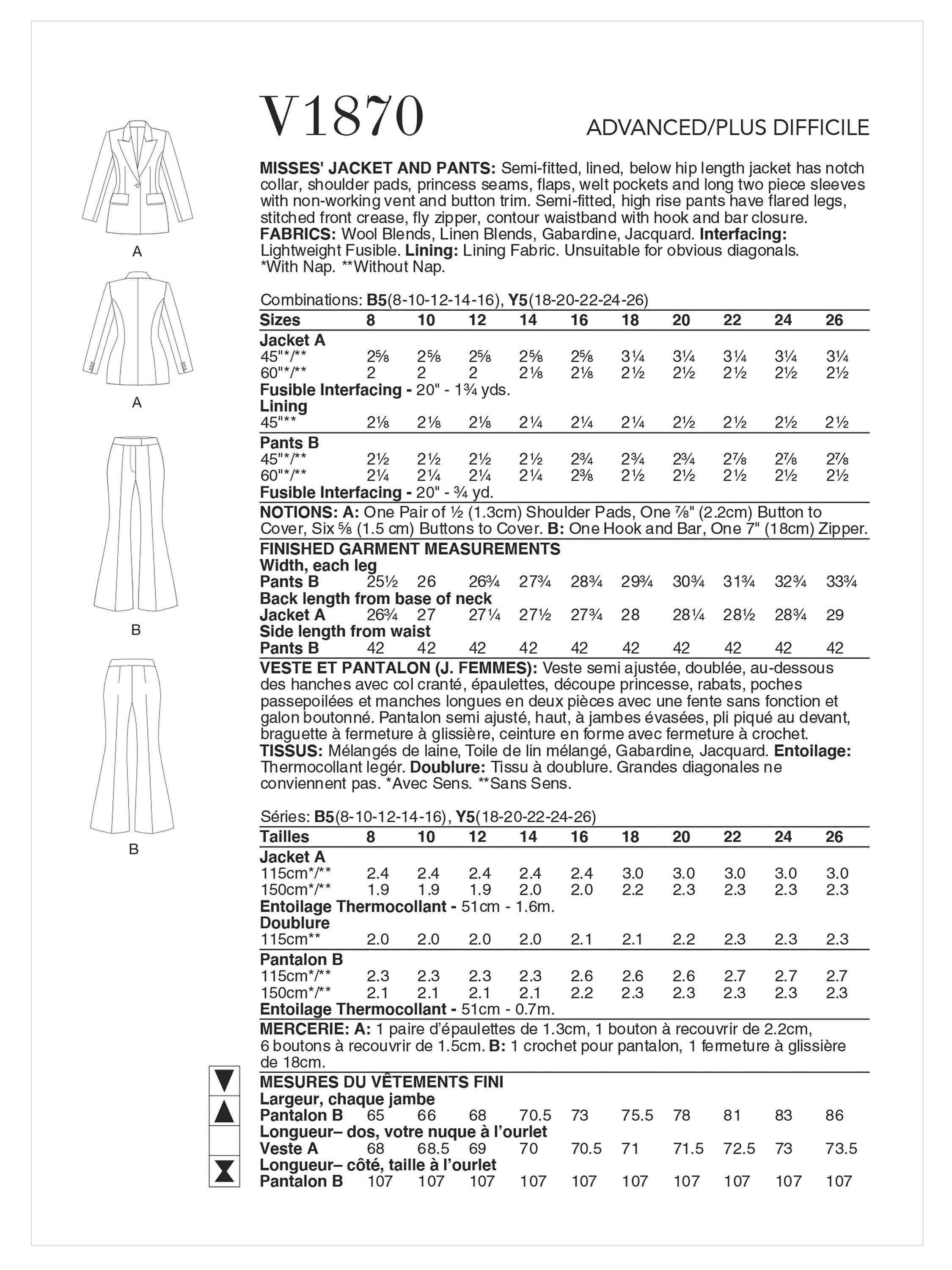 VogueMisses' Jacket and Trousers Sewing Pattern, V1870