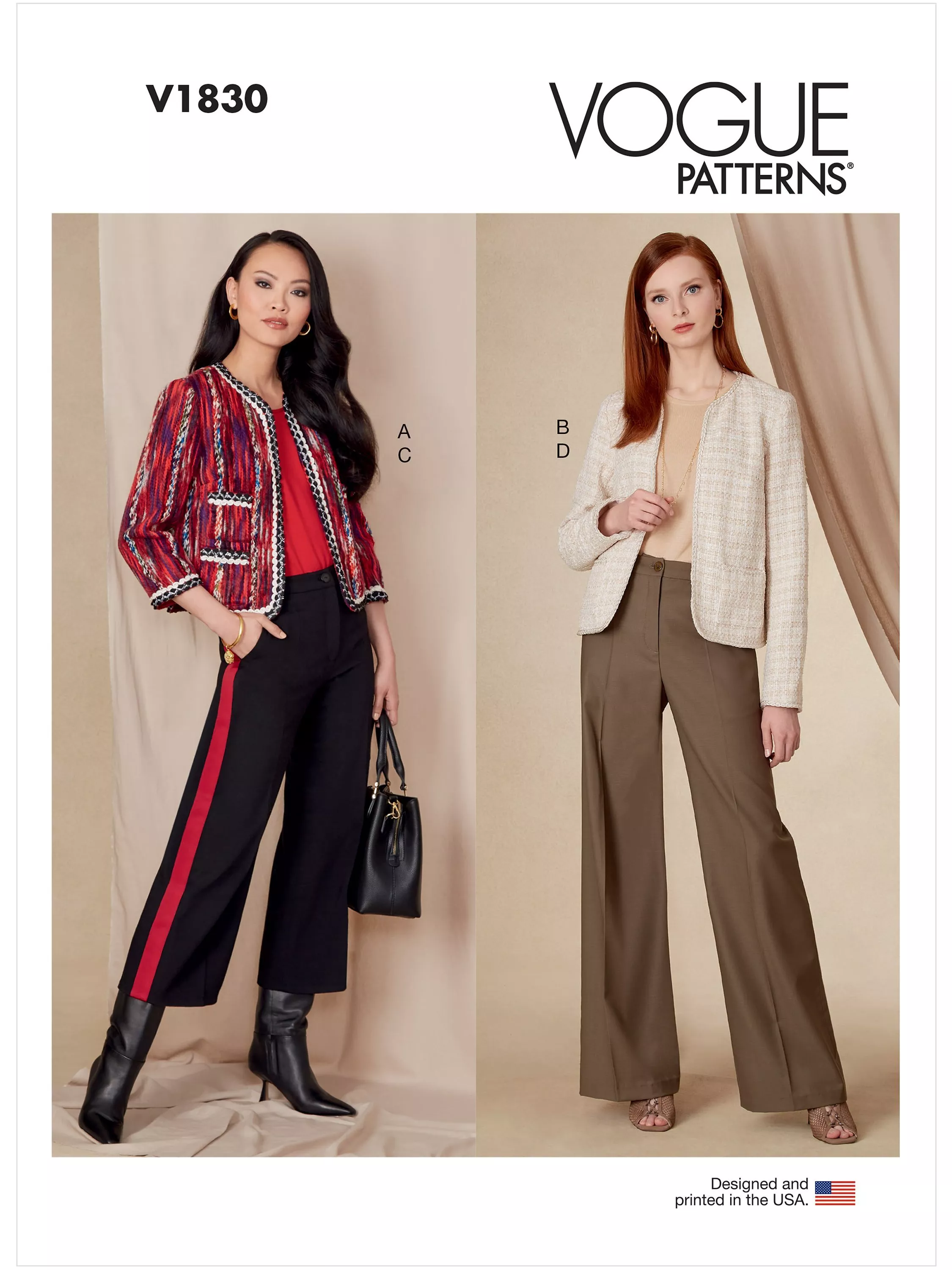 VogueMisses' Jacket & Wide Leg Trousers Sewing Pattern V1830, B5