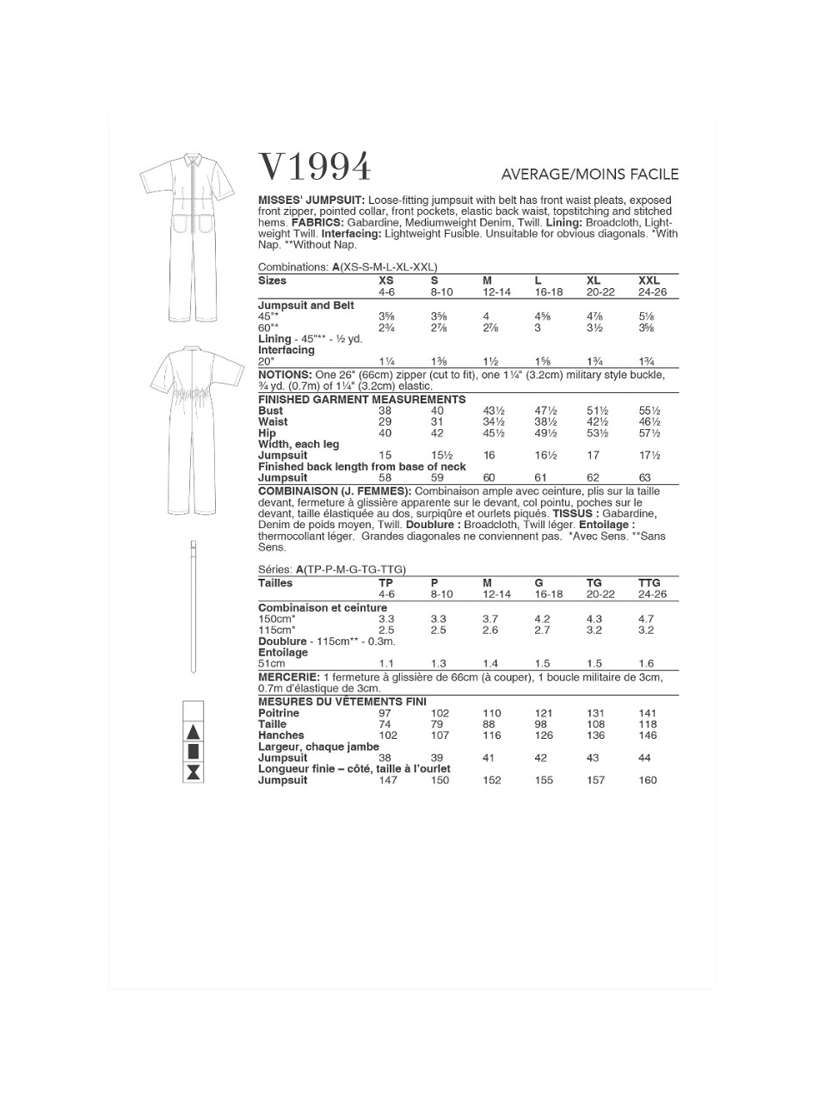 SimplicityVogue Misses' Jumpsuit Sewing Pattern, V1994
