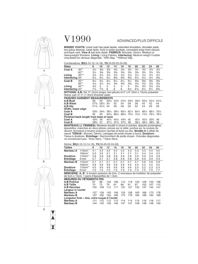 SimplicityVogue Misses' Lined Coat Sewing Pattern, V1990