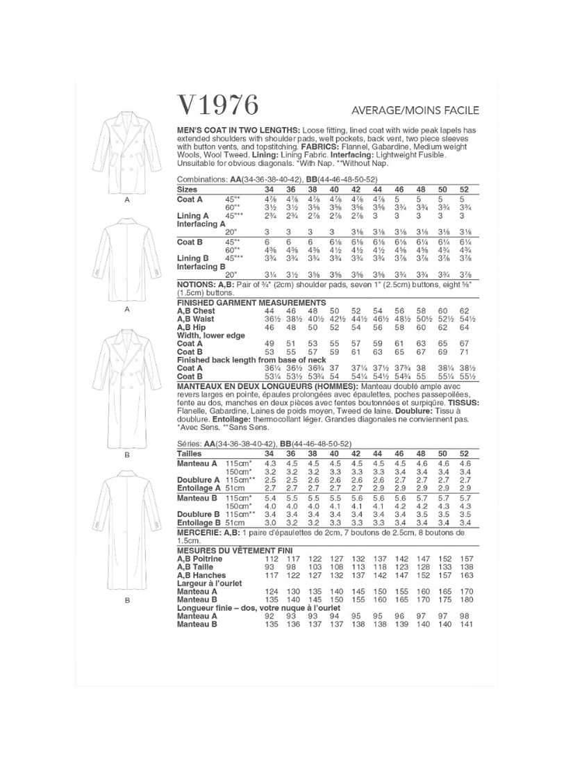 SimplicityVogue Misses' Loose Fitted Lined Coat Sewing Pattern, V1976