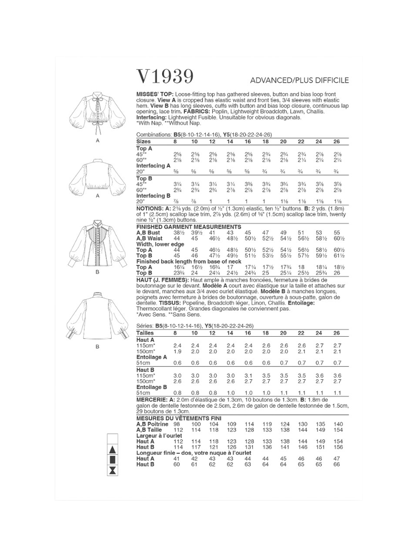 SimplicityVogue Misses' Loose Fitting Top Sewing Pattern, V1939