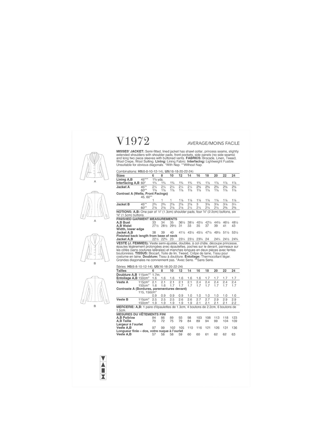 SimplicityVogue Misses' Semi Fitted Jacket Sewing Pattern, V1972