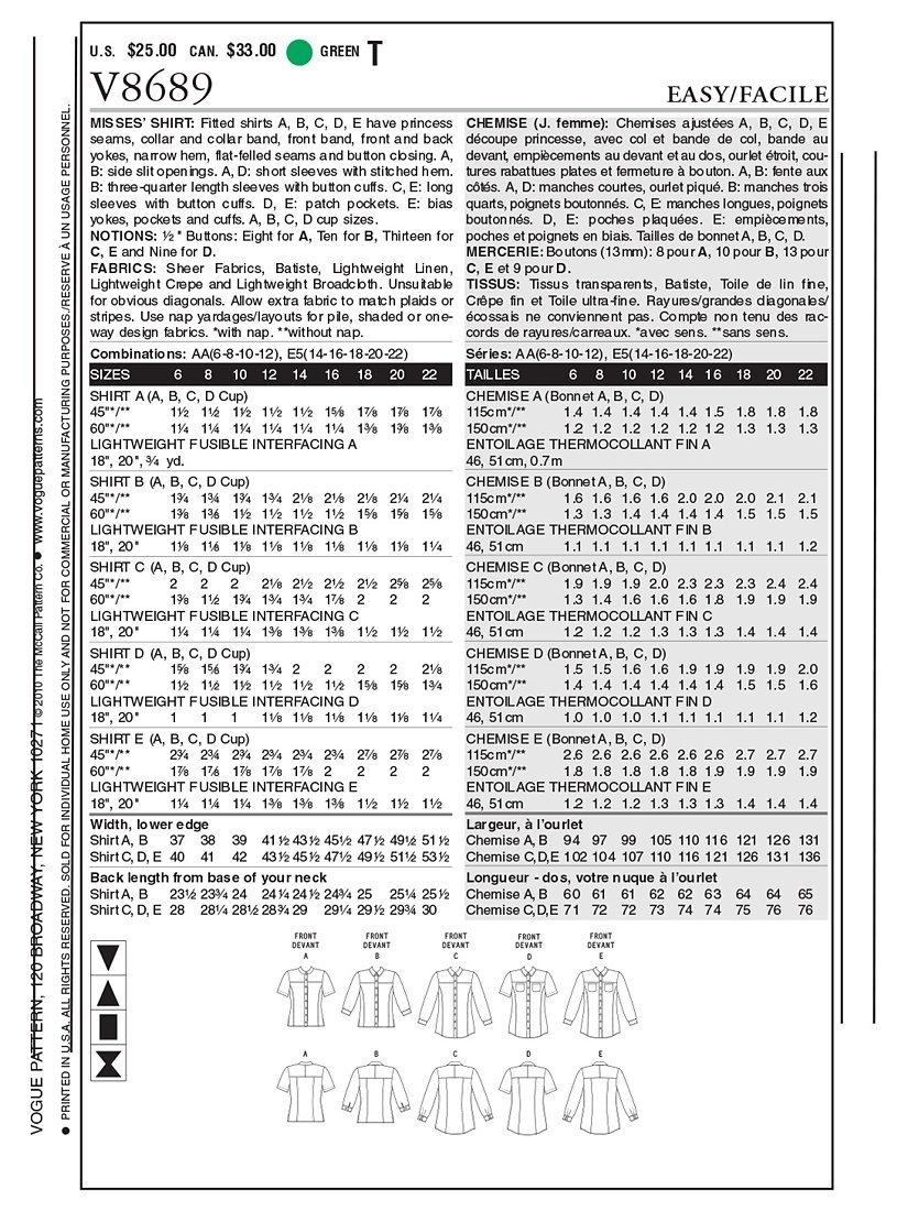 VogueMisses' Shirts Sewing Pattern, V8689