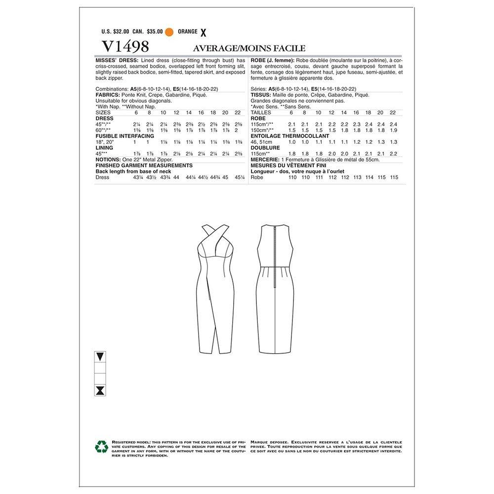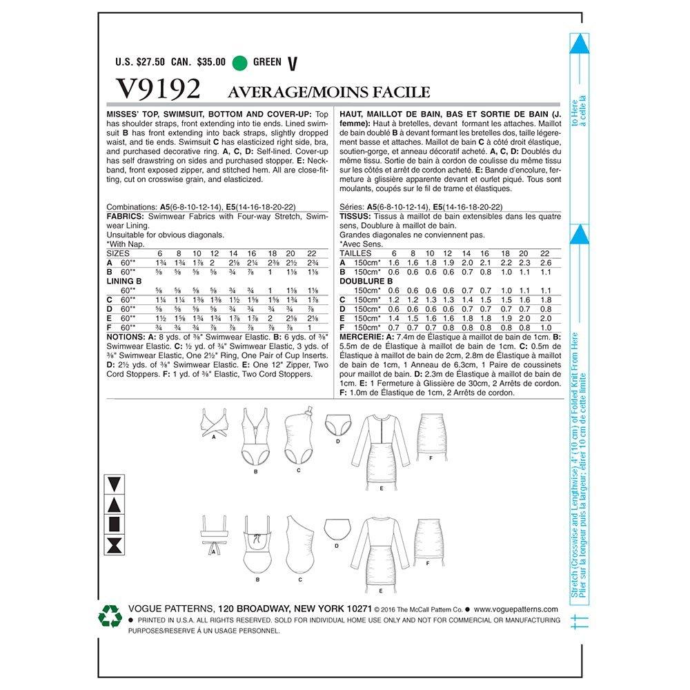 Create a striking cross strap bikini, stylish swimsuits and a cover-up with this paper pattern from Vogue.