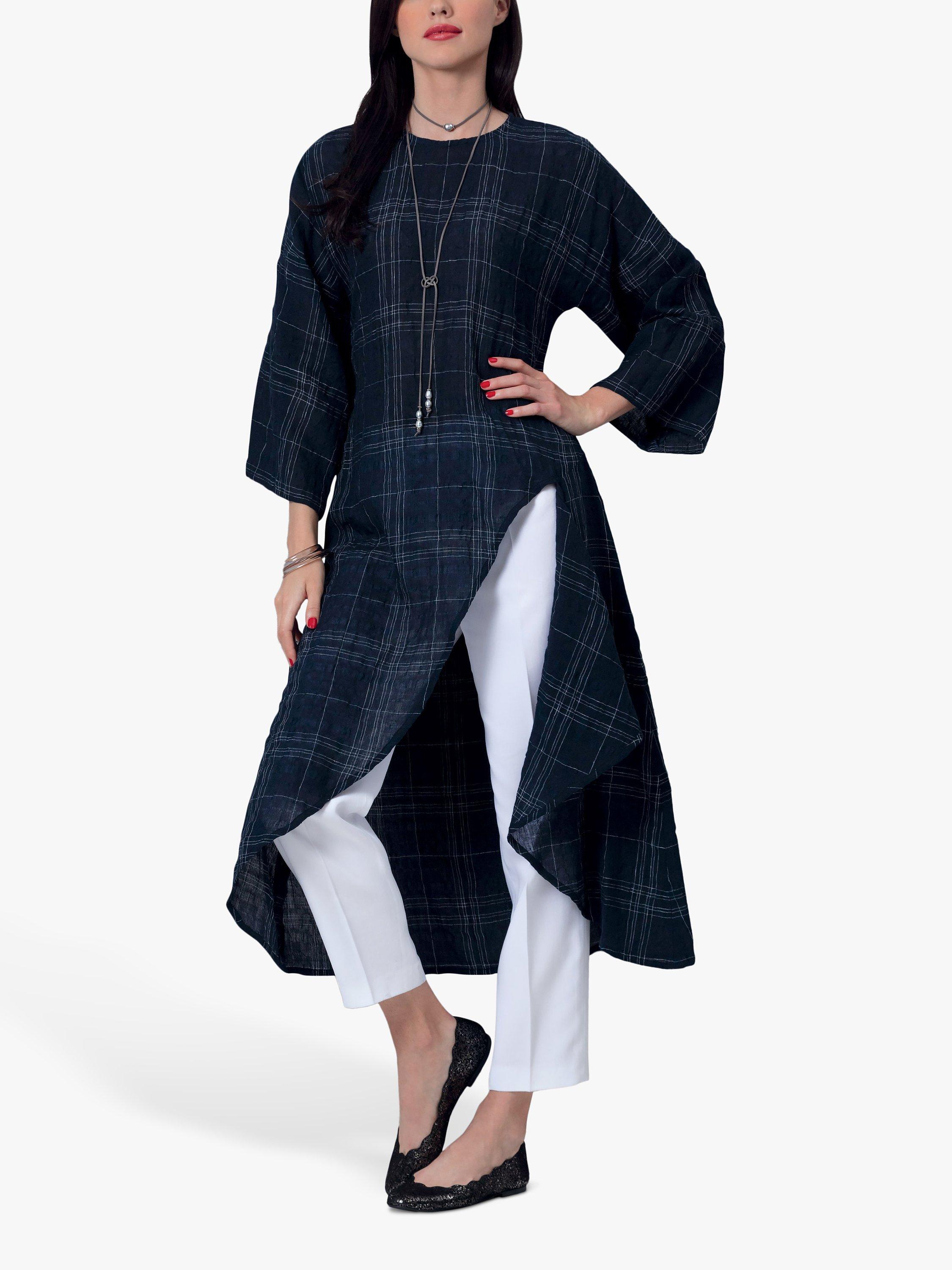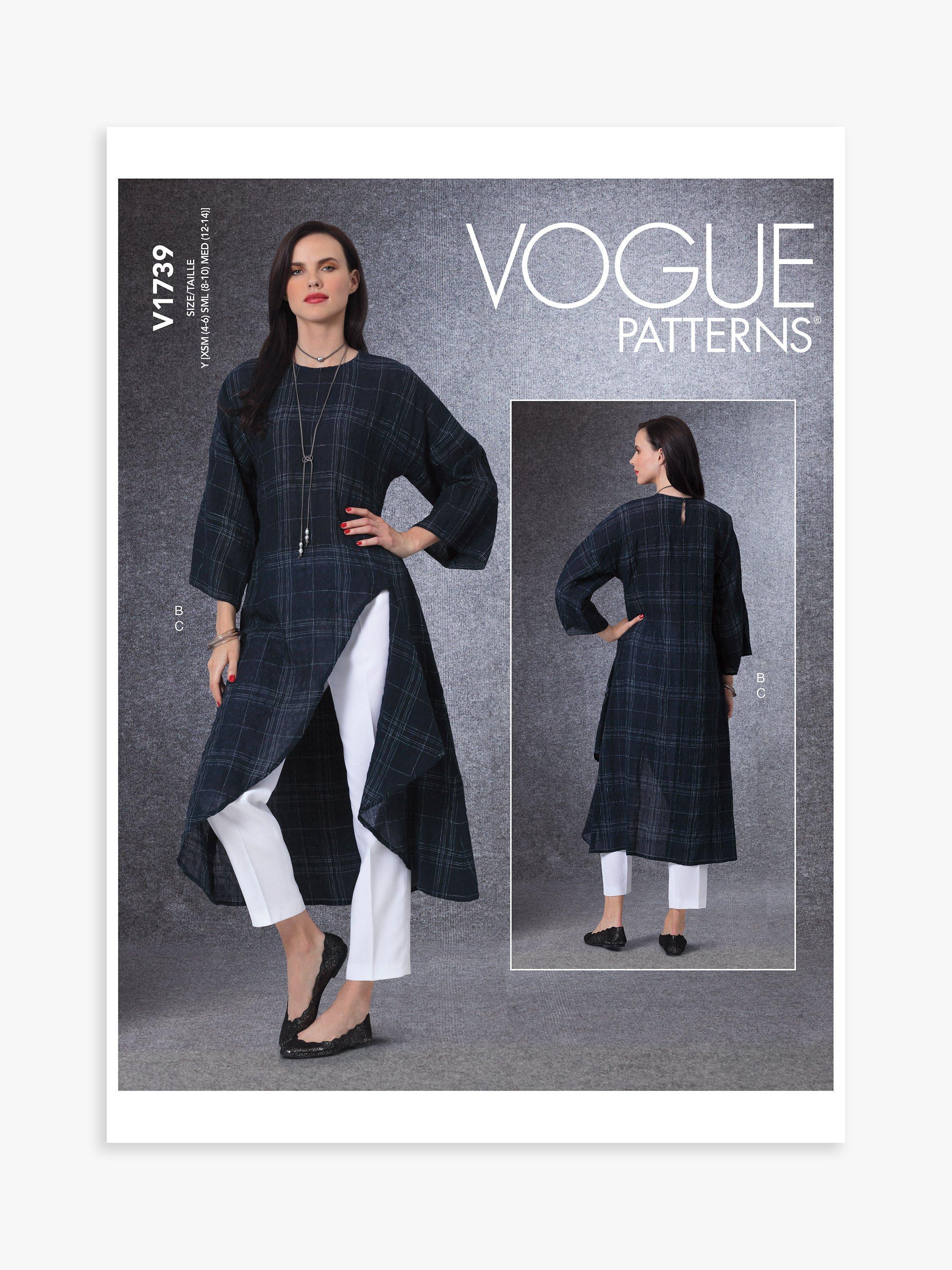 Fitted tunics have sleeve variations and shaped hemlines, wrong side of fabric will show. Pull on pants have waistband with back elastic and leg and length variations.