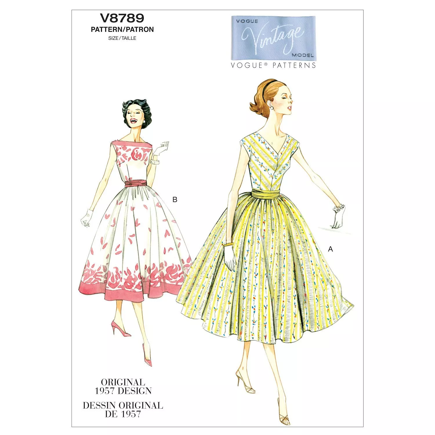 Get inspired by the 50s and design your own dress with this sewing pattern from Vogue. This pullover dress has fitted bodice, skirt front/back cut-in-one, no right side seam, and left side zipper. Variation A has bias bodice and was designed for lightweight broadcloth, Crepe, Shantung. Variation B comes with button/loop shoulder closing, dress cut on crosswise grain of fabric and looks better with a Border Print fabric.