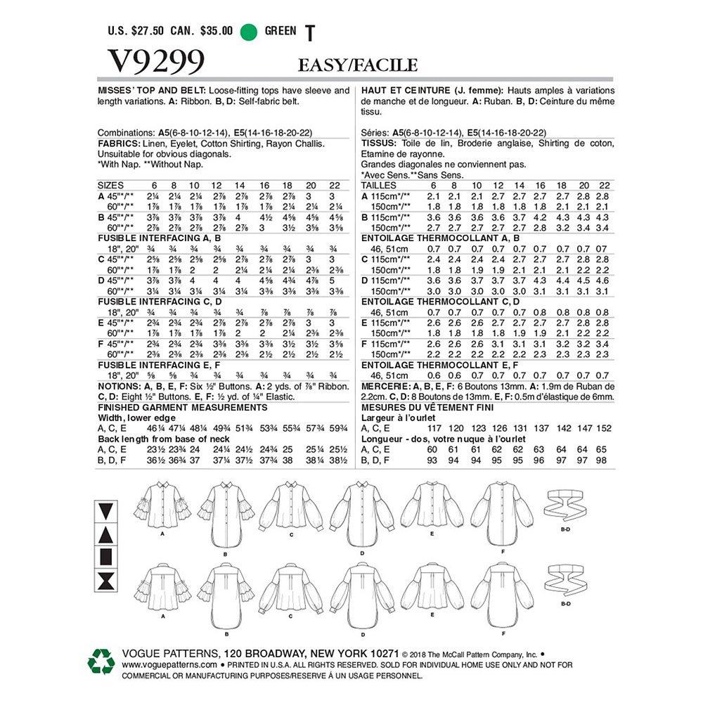 VogueWomen's Belted Top Sewing Pattern, 9299