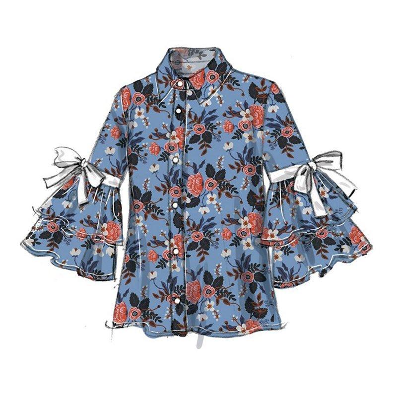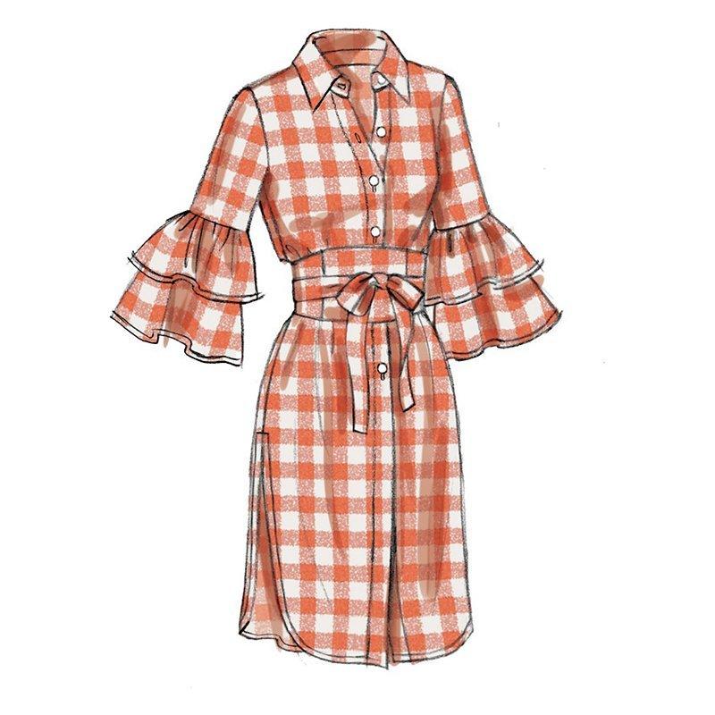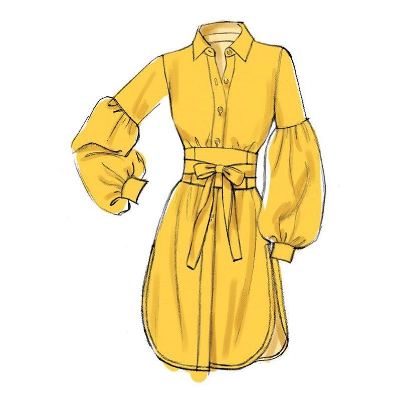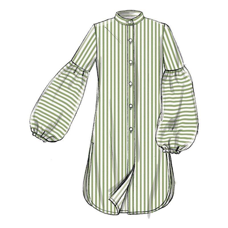 Following this pattern, you can create a loose fitting top with sleeve and length variations and a self-tie fabric belt.