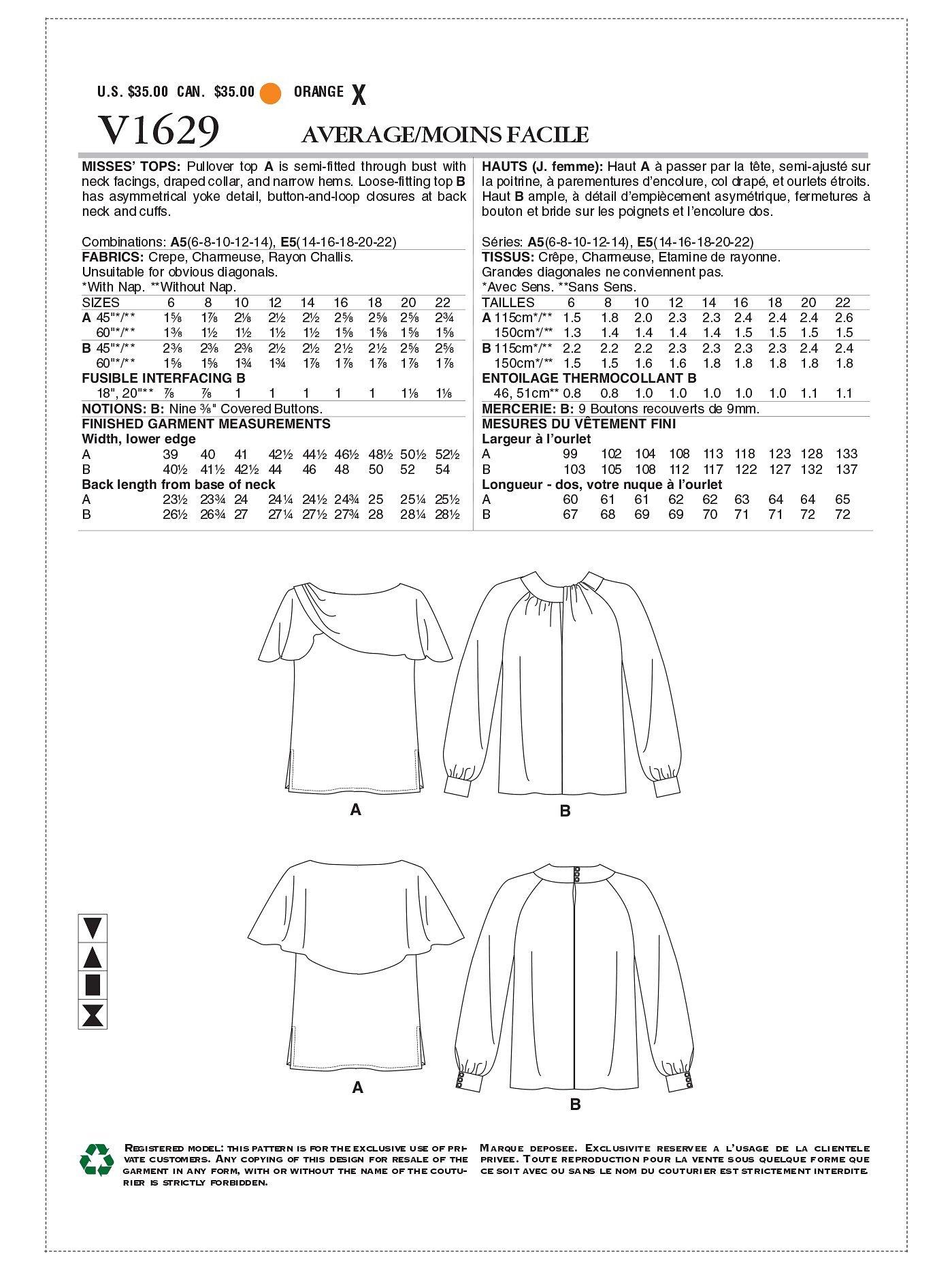 VogueWomen's Blouse Sewing Pattern, 1629
